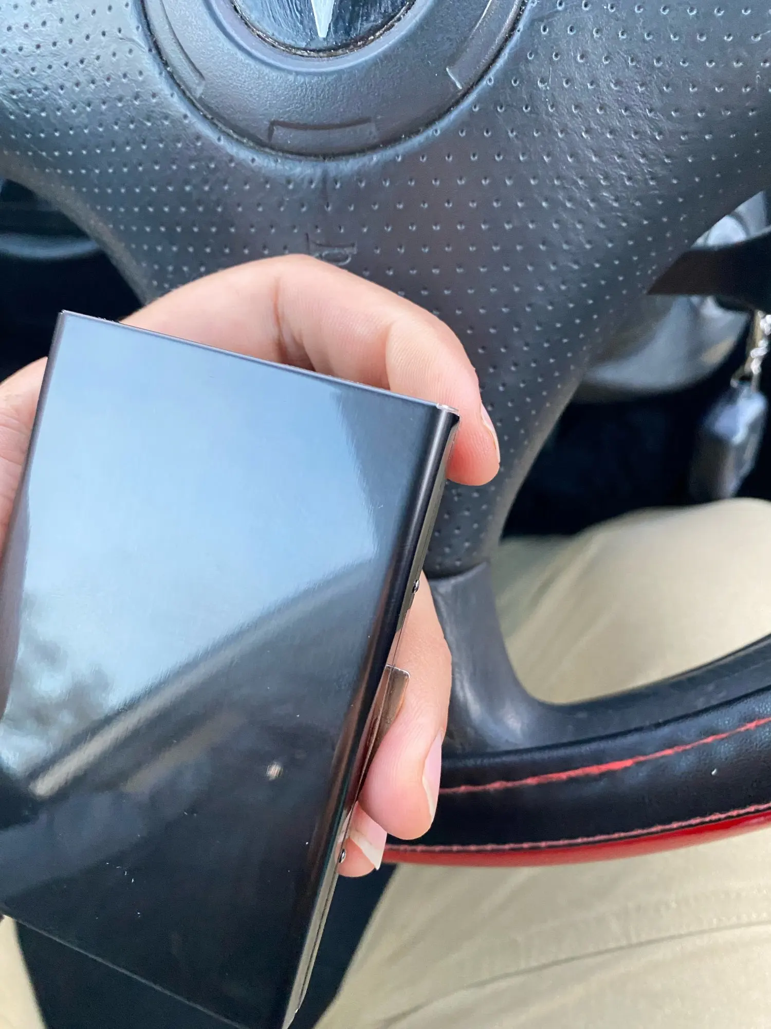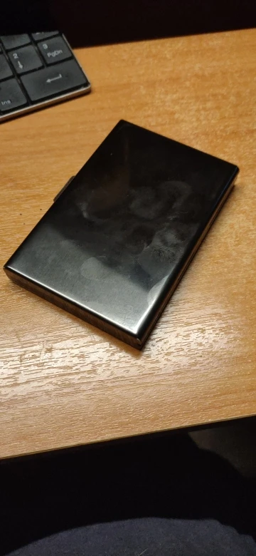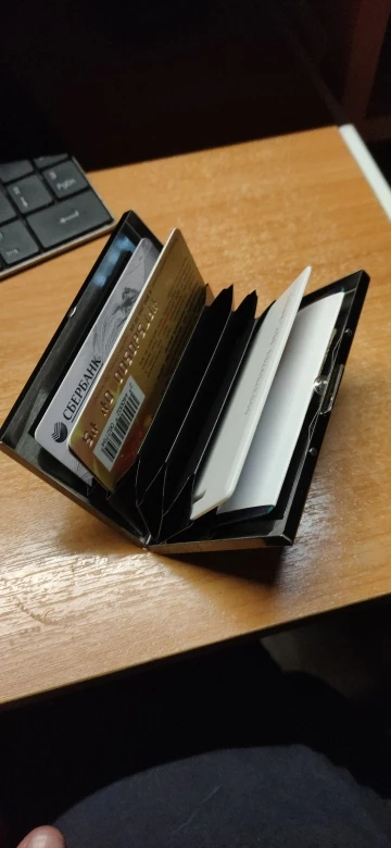 отменное партмане для карточек из стали , черного окраса глянец , вмещается не более 9 карточек , далее идет диформация по низу , в целом отличный предмет . пользуюсь на ежедневной основе . покупкой доволен в полной мере .