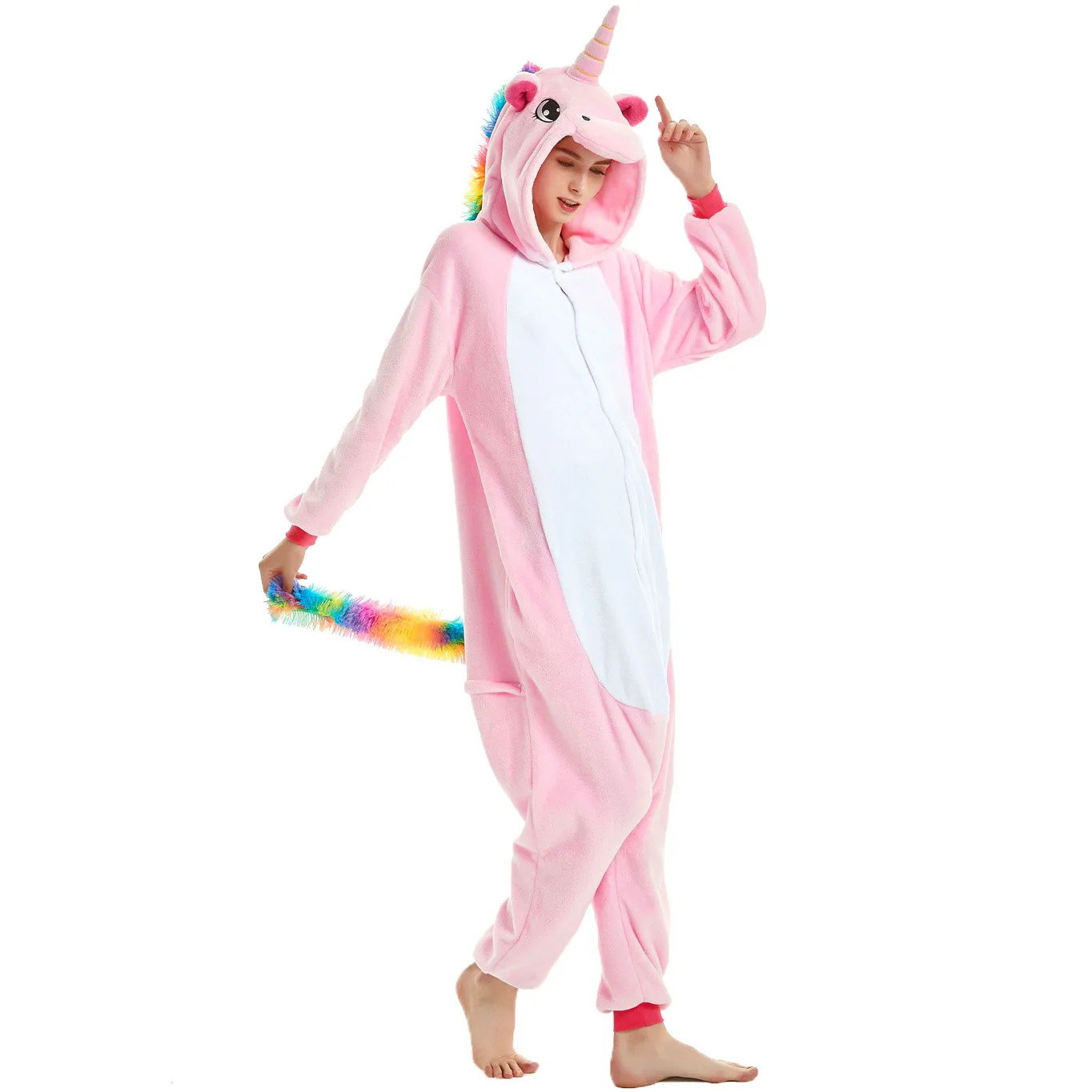 2020 женские милые фланелевые пижамы с рисунками животных, одежда для сна для взрослых, унисекс, единорог, кошка, пижамные комплекты, детские пижамы с капюшоном, домашняя одежда
