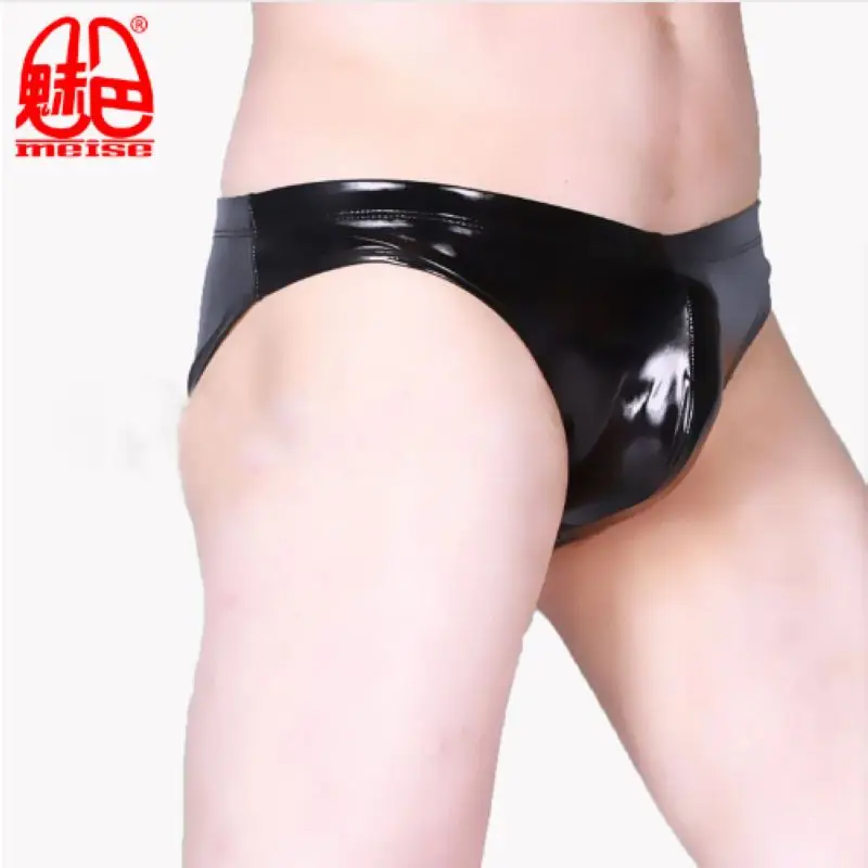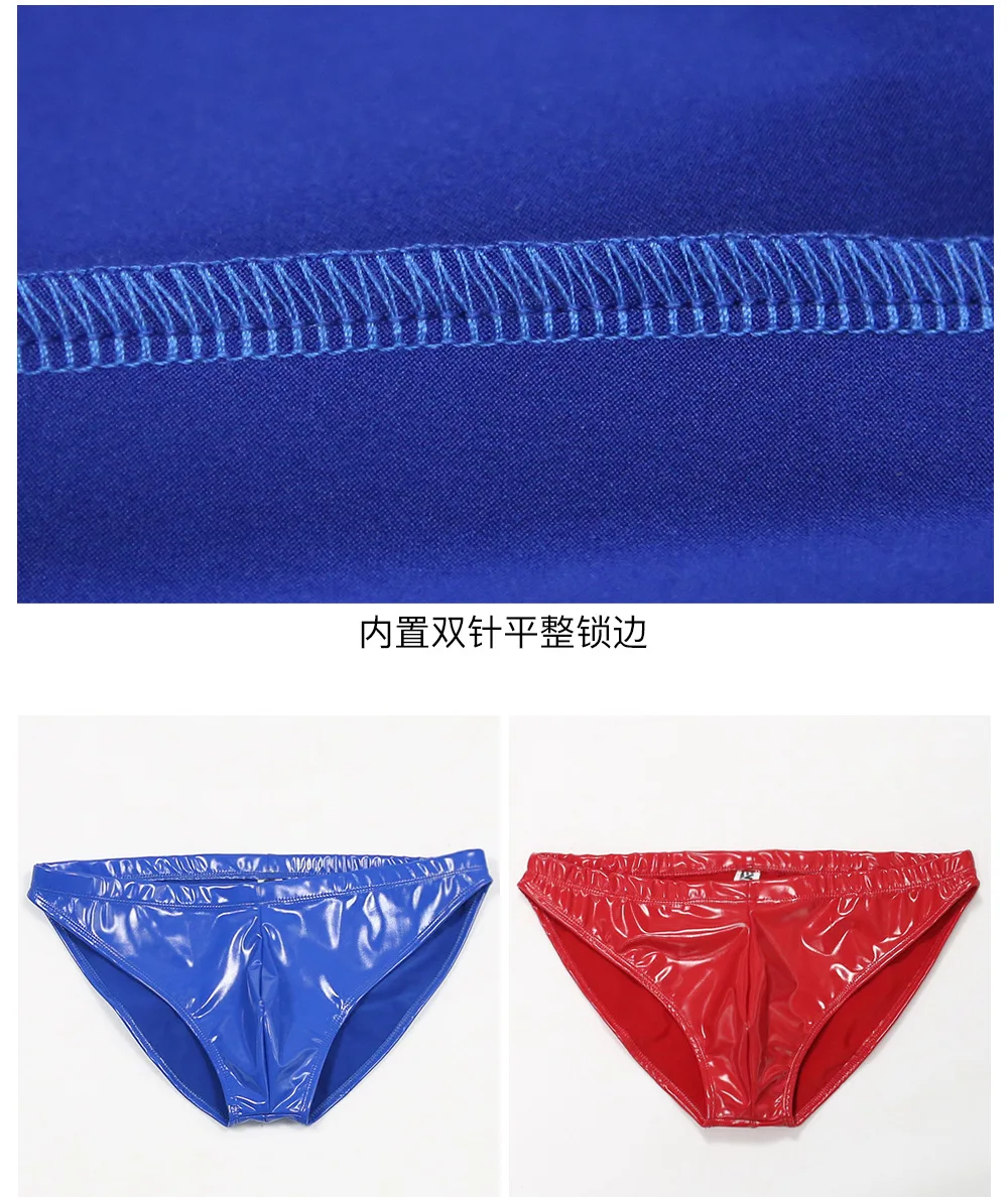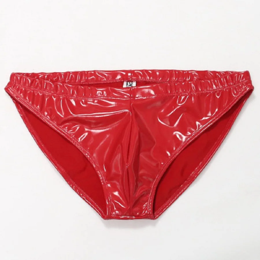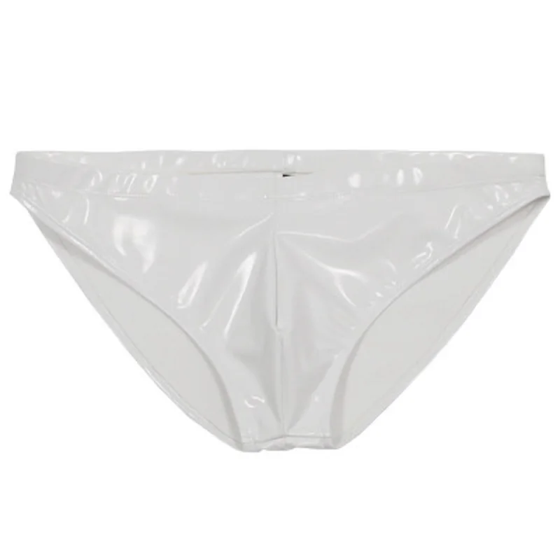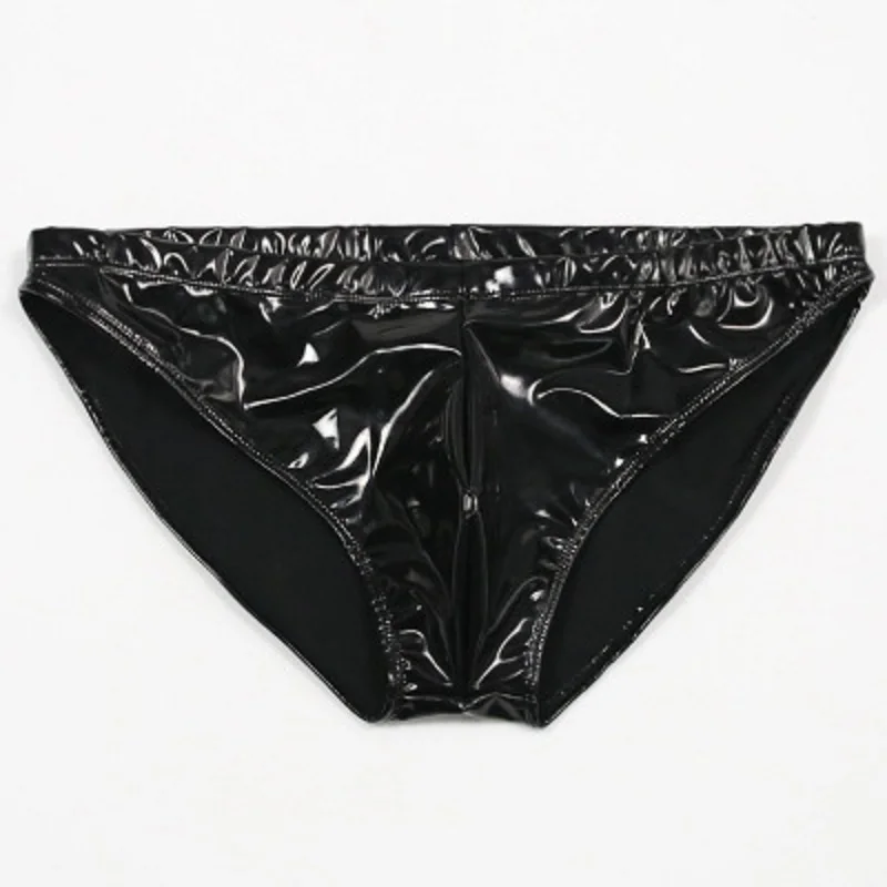 Мужские трусы из искусственной кожи с низкой талией, блестящие, коллоидные, с имитацией латекса, глянцевые, с U-образным выпуклым мешочком, эротическое латексное обтягивающее нижнее белье