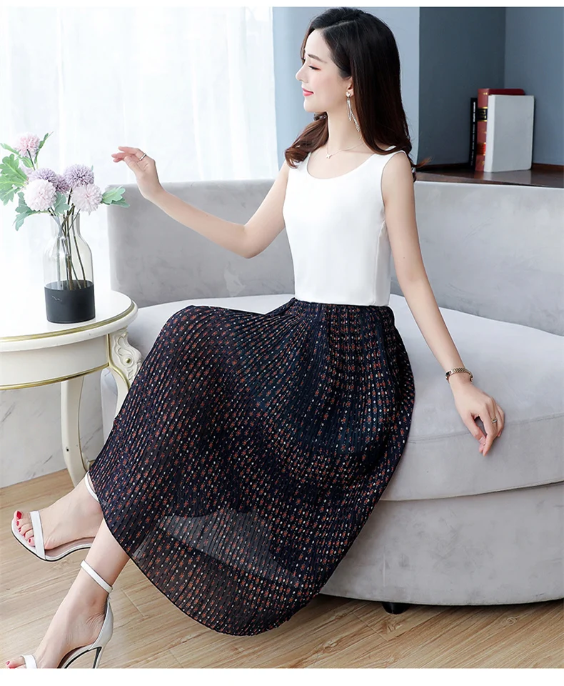 Женская летняя юбка-трапеция с цветочным принтом