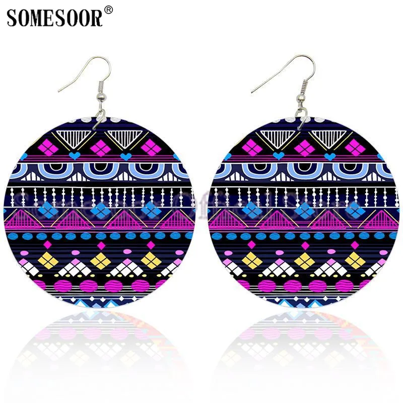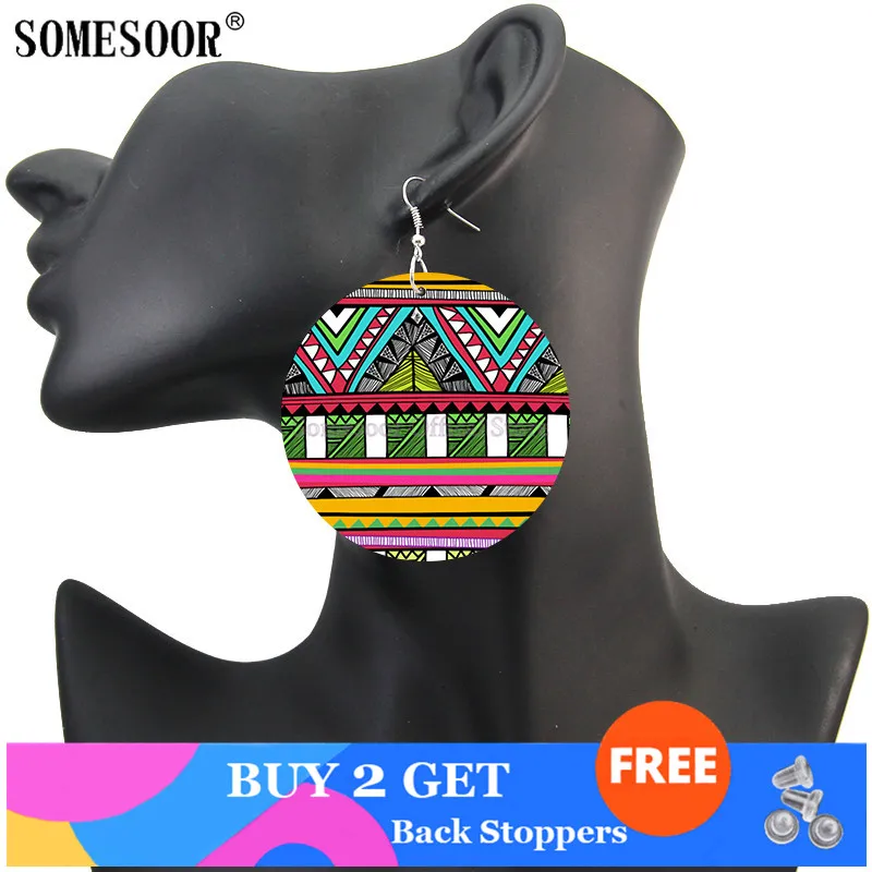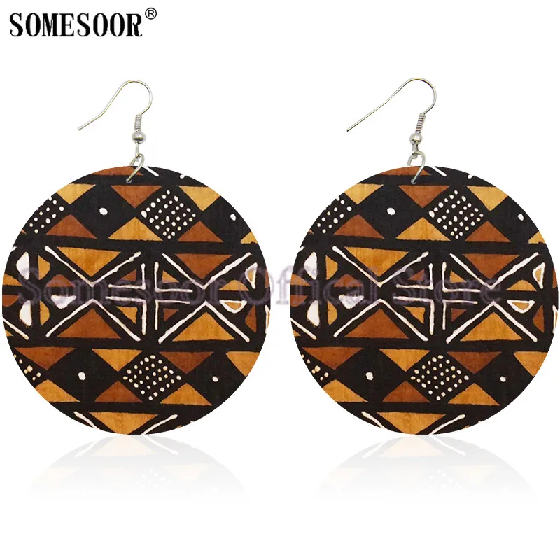 Деревянные этнические серьги SOMESOOR в африканском стиле, богемные висячие серьги с двусторонним принтом, подарки для женщин, ювелирные изделия с петлями