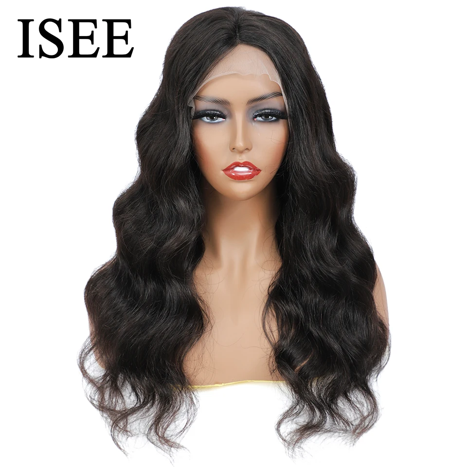 50 см свободные волнистые парики 13X4X1 T-Part парик ISEE человеческие волосы парики для женщин бразильские свободные волнистые кружевные передние человеческие волосы парики