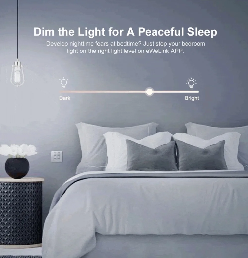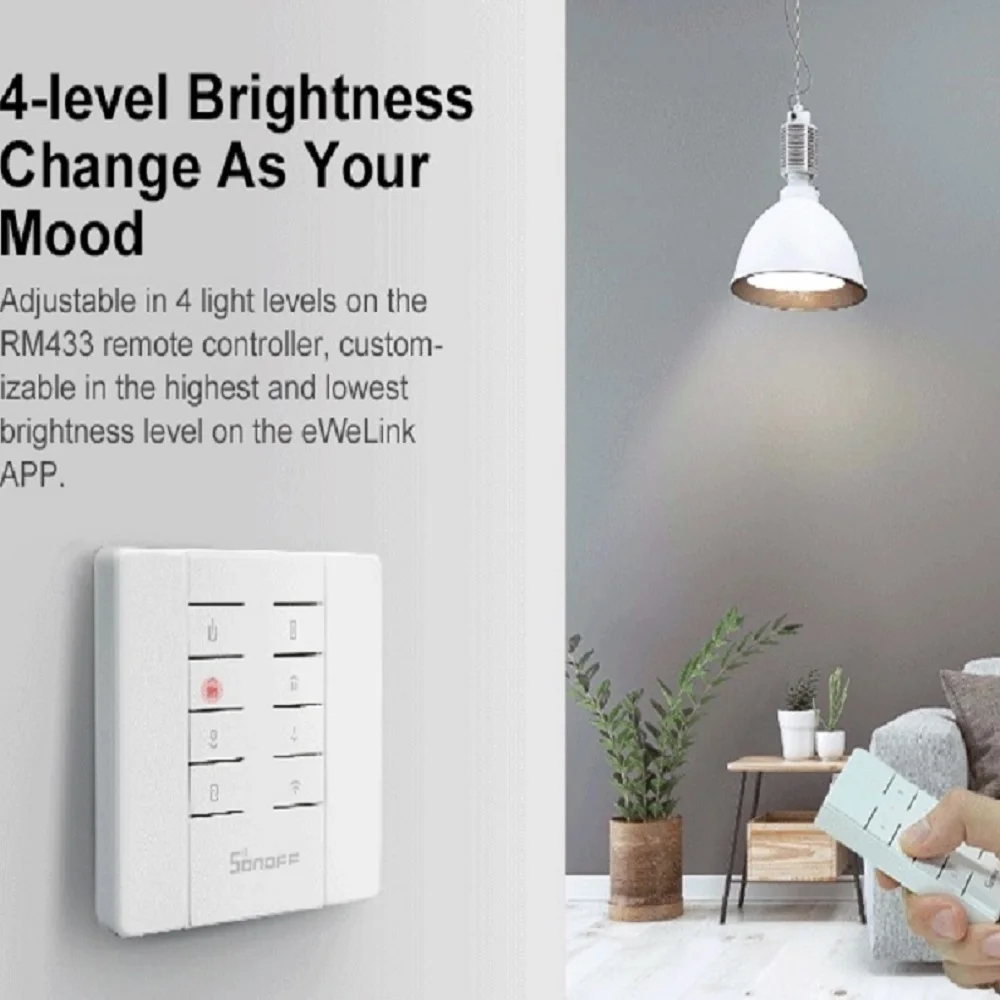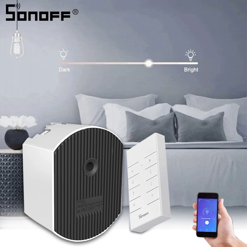 Из-за популярного спроса SONOFF в конечном итоге выпускает новый Интеллектуальный переключатель диммера D1. Отлично улучшает систему освещения в вашем доме с различными уровнями яркости. Включите/выключите, Осветите и затемните лампы накаливания и светодиодные лампы с регулируемой яркостью через пульт управления RM433, приложение eWeLink, Alexa или Google Home. Новые добавленные режимы восхода и заката доступны в умной сцене, чтобы активировать свет при закате и отключить его при восходе солнца. Удивительно, что расписание времени и настройка яркости могут быть включены одновременно в умной сцене. Это означает, что вы можете запланировать автоматическое включение светильника в спальне при 40% яркости в 7:00 и выключение при 100% яркости в 7:00. Имеется база для пульта управления RM433, который используется для прямой замены выключателя света и установки в монтажную коробку 86 типа, все выглядит идеально. Кроме того, Диммер может быть установлен в монтажную коробку типа ЕС и США. Примечание: пульт управления RM433 и база в комплект не входят.