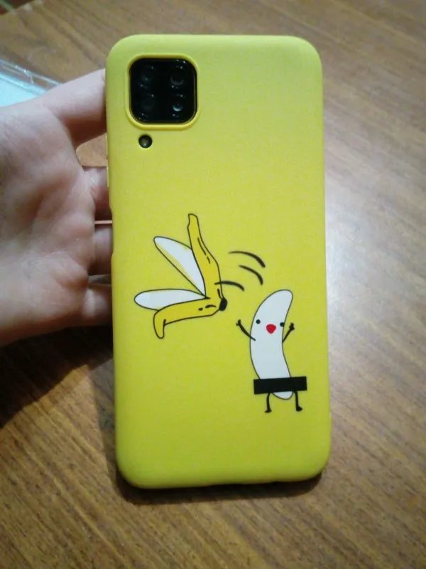 Чехол жёлтого цвета с бананом: мягкий, матовая поверхность, рисунок прорисован чётко, без помарок, разъёмы все идеально совпадают, есть отверстия для брелка. Все борты телефона со всех сторон утопают в чехле, т.е.телефон полностью защищён. Продавца рекомендую. Доставка очень быстрая, заказ получила раньше прописанного срока на 1 день. С продавцом не связывалась, не было необходимости.