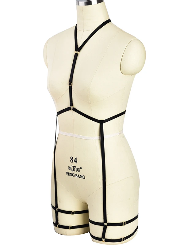 Полный комплект, портупея для тела, черный женский сексуальный топ, нижнее белье в готическом стиле, портупея, бюстгальтер, подвязки для чулок в стиле панк, пояс для ног, портупея для тела