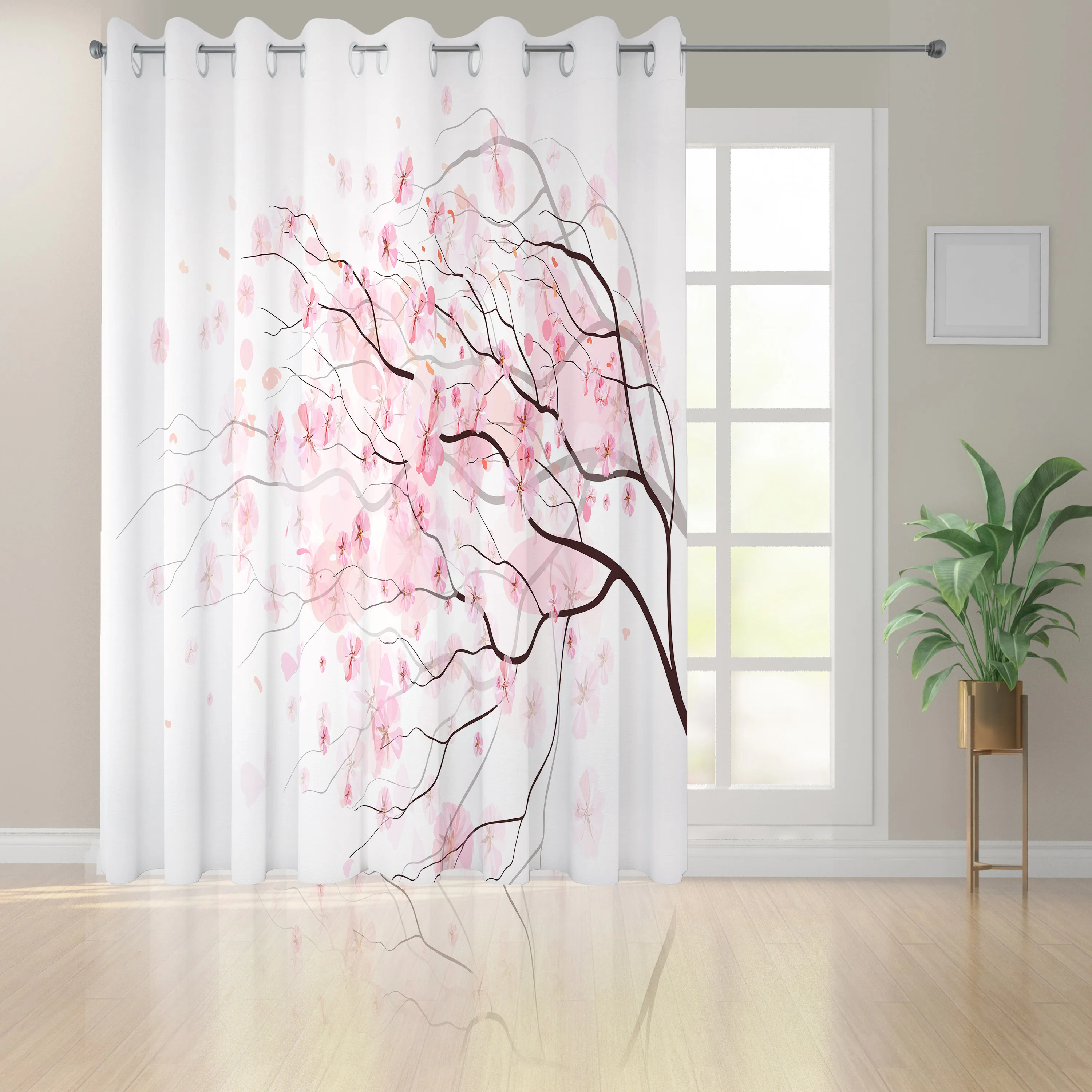 Шторы кухонные весенние с цветами вишни, занавески для спальни, пре...