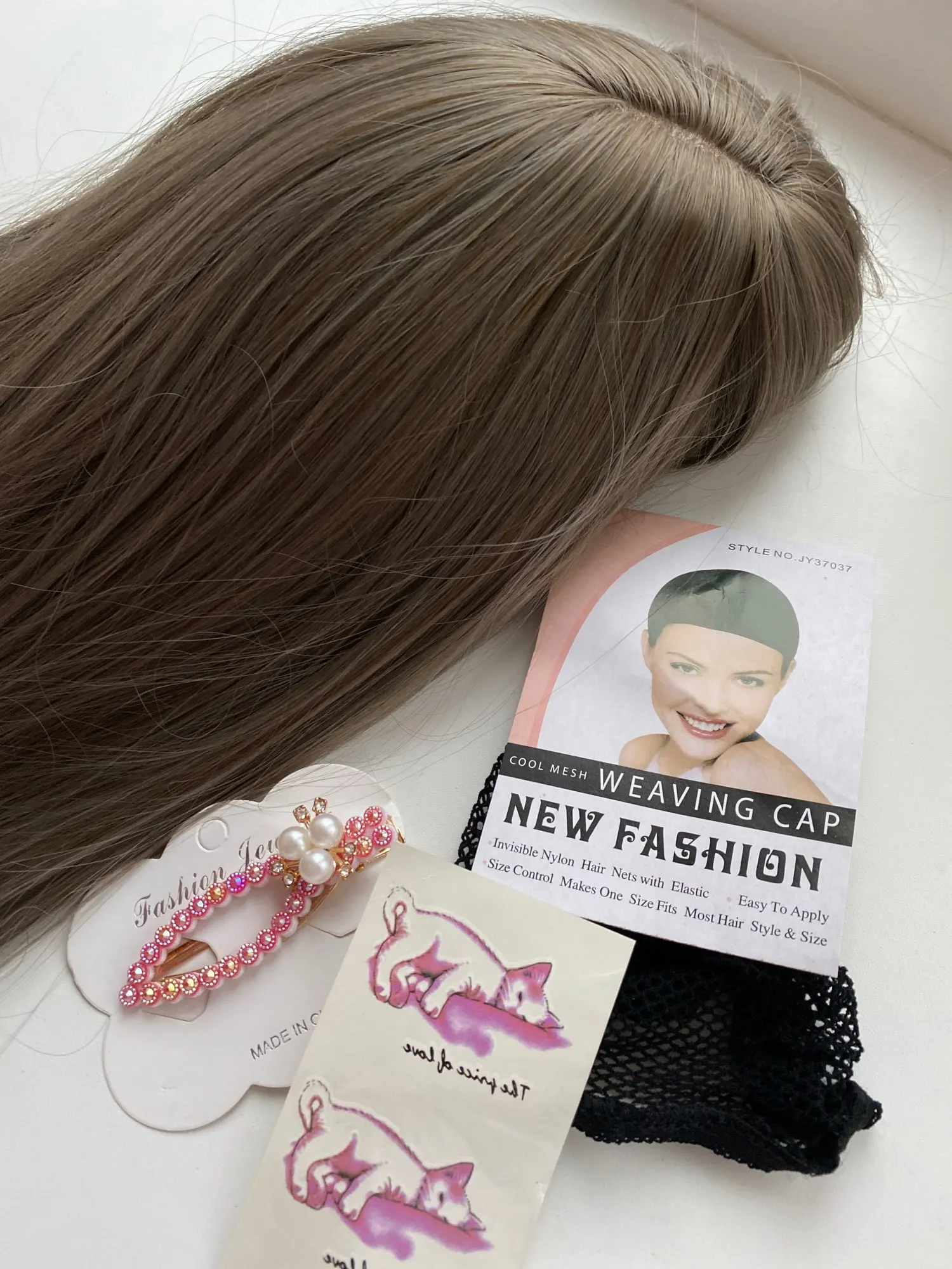 У меня были парики от другой фирмы, этот по сравнению с ними похуже. Цвет не совсем понятный, то ли серый, то ли русо-коричневый, не такой длинный как я ожидала, волосы падают, шапочка странно ложится на голове, но есть и плюс: выглядит натурально