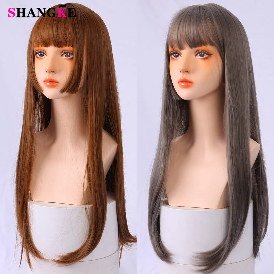 Парик для косплея SHANGKE, длинный прямой синтетический парик с челкой, парики для женщин, афроамериканский парик Лолиты, парик для косплея