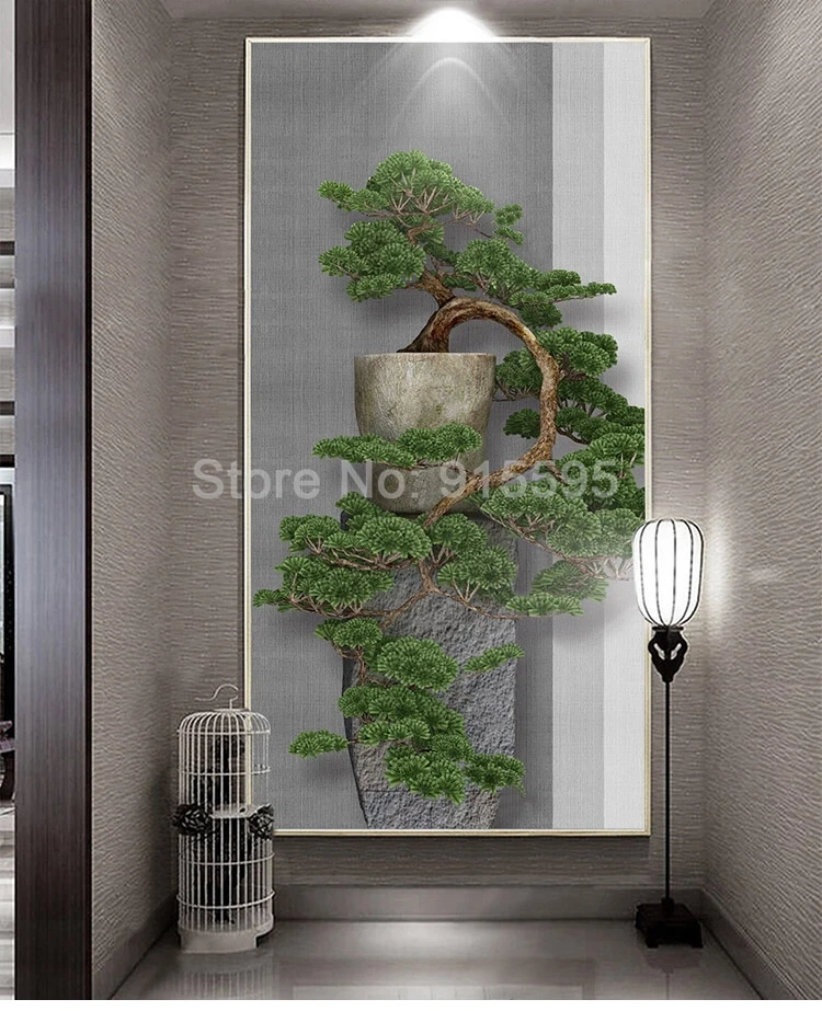 Пользовательское фото, Новый китайский стиль, 3D стереоскопический зеленый сосна, вход, крыльцо, Настенная декоративная живопись, большие Настенные обои, искусство