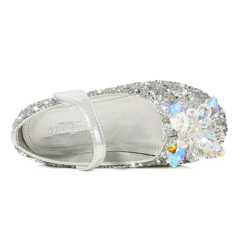 Сверкающие детские туфли для девочек, туфли принцессы для вечеринки, свадьбы, стразы с блестками, сверкающие детские туфли на плоской подошве