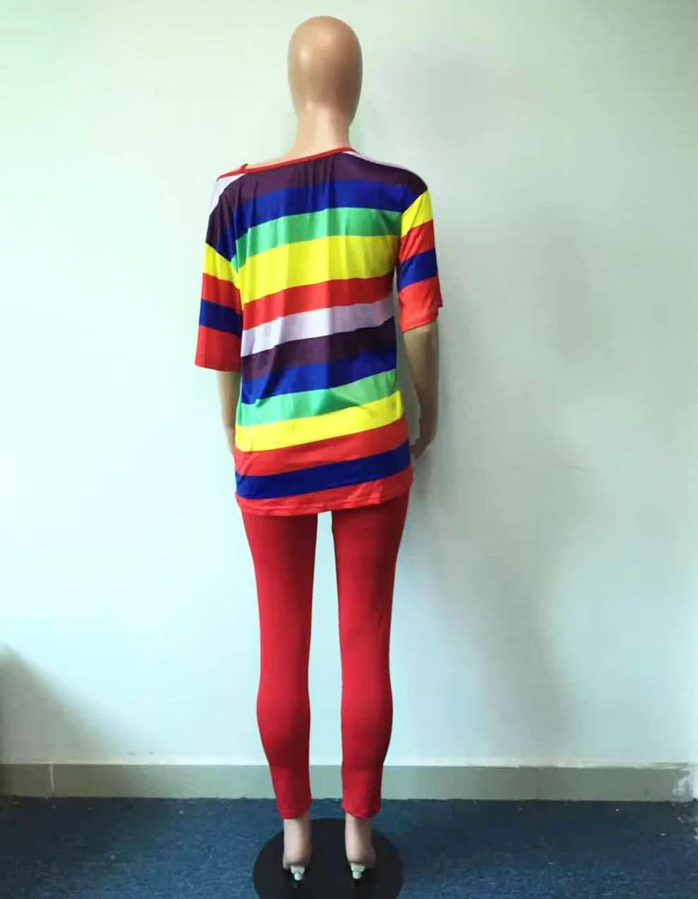 Спортивный костюм-двойка с шортами и рукавами, с радужными полосками