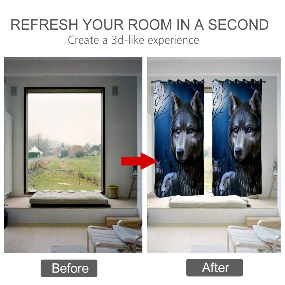 BeddingOutlet, занавеска для спальни с волком, животные, волки, занавеска на окно, 3D принт, лес, ночник, лунный свет, s, для гостиной