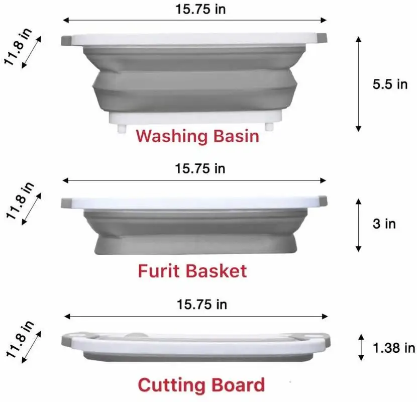 Складной и портативный: отлично подходит для домашнего использования и использования на открытом воздухе, например, для кемпинга, уборки барбекю и кемпинга, мытья посуды и переноски холодных напитков. Прочная разделочная доска для резки, измельчения и нарезки после складывания идеально подходит для посуды/фруктов/овощей/мяса/морепродуктов/или подставки для посуды.
