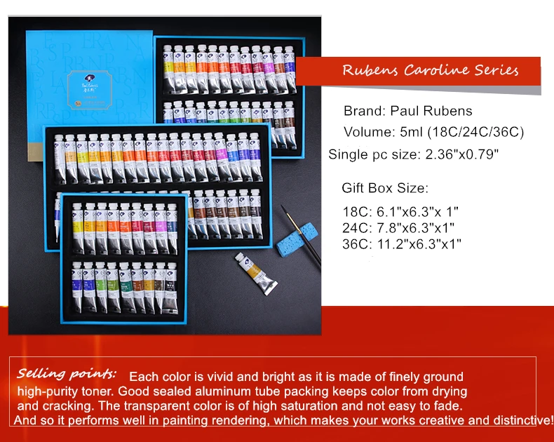 Поль Рубенс, 5 мл, акварельные краски в наборе тюбиков, 182436 ярких цветов, с высоким содержанием пигмента, идеально подходит для художников товары для рукоделия