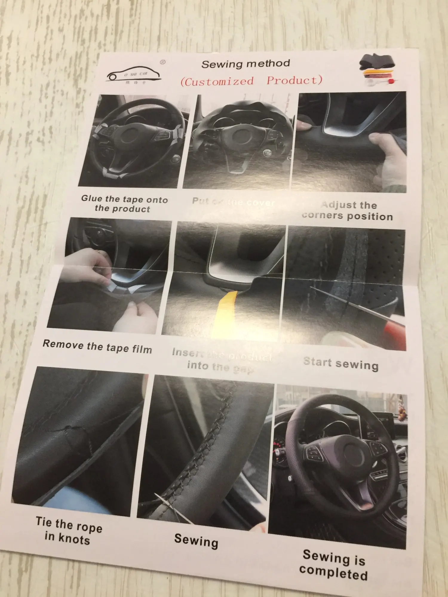 Шаг 1. Проверьте положение чехла и руля, а затем закрепите его двусторонней клейкой лентой.Шаг 2. Положите удлинитель чехла в шов руля.Шаг 3. Начните сшивать.Видео установки: у нас есть видео инструкции по установке на "Youtube". Вы можете найти видео, выполнив поиск "O SHI CAR" на