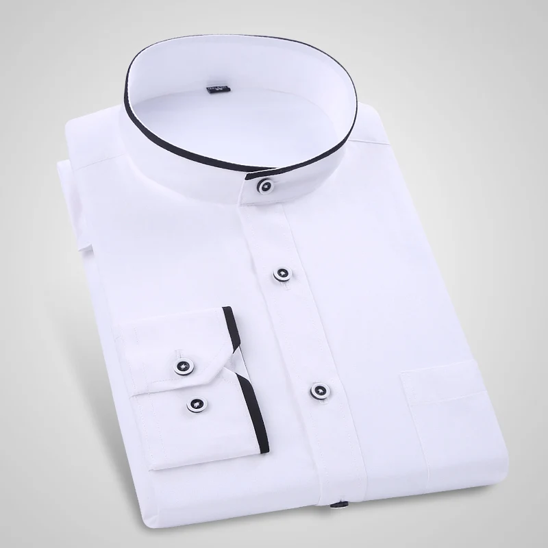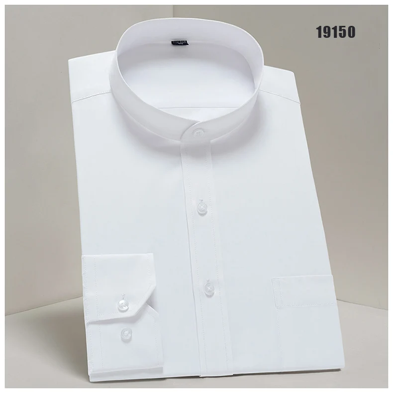 Мужская деловая рубашка, с воротником-стойкой, с длинными рукавами