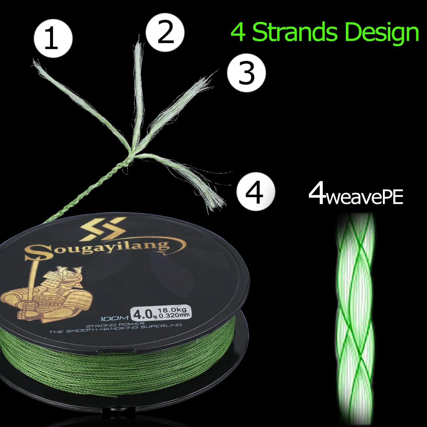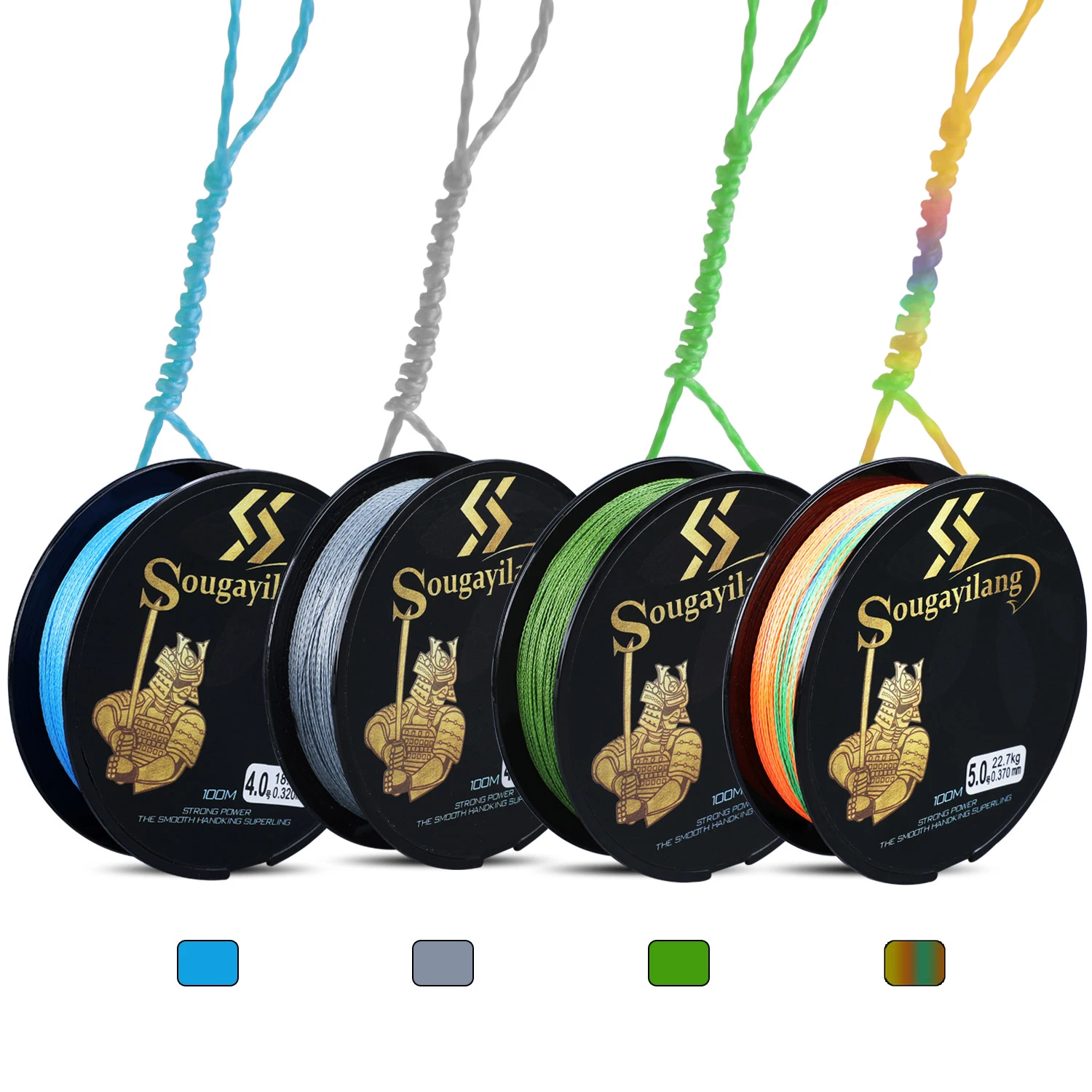 Рыболовная плетеная леска Sougayilang 4 цвета, 100 м, 4 нити, гладкая плетеная леска для ловли карпа