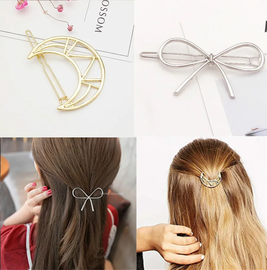 Металлические заколки для волос в форме Луны и банта, заколки для в...