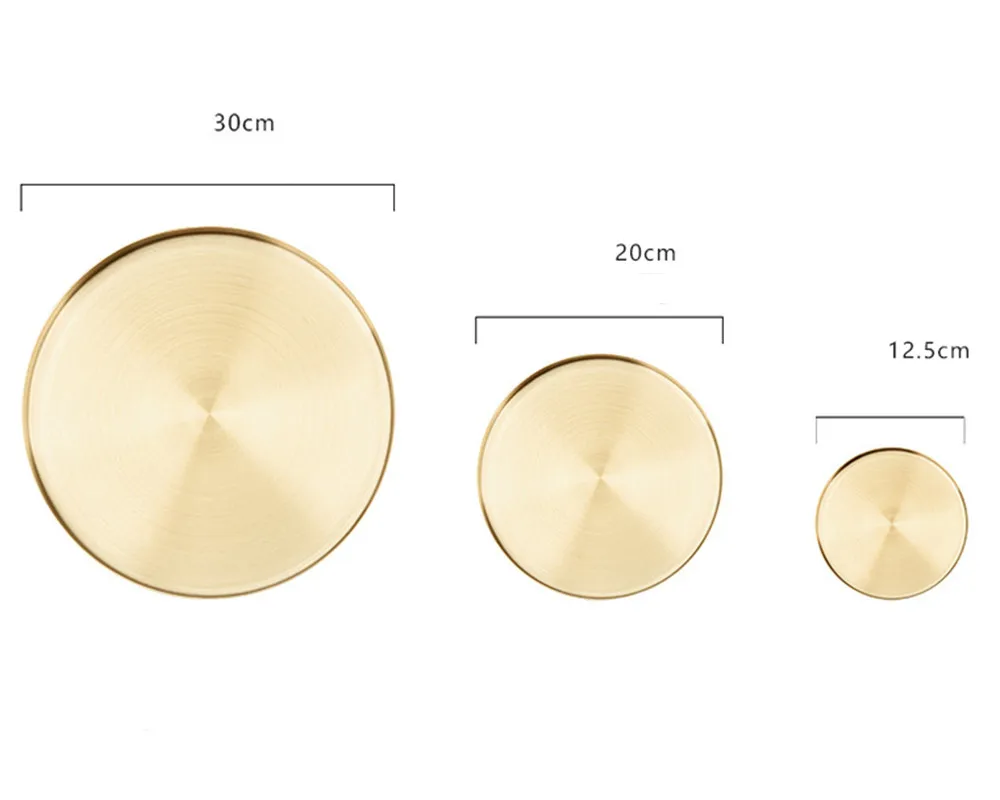 Особенности 1. Простой офисный лоток для хранения 2. Высококачественный металлический материал 3. Использование для ювелирных изделий, колец, конфетных тортов, мелочей Технические характеристики Материал: металл Форма: круглая Цвет: Золотой Диаметр: 12,5 см, 20 см, 30 см Посылка в комплекте 1 * лоток для хранения Напоминания: 1) из-за разницы компьютерных мониторов цвета могут немного отличаться от изображений. 2) возможны отклонения на 1 - 2 см из-за ручного измерения