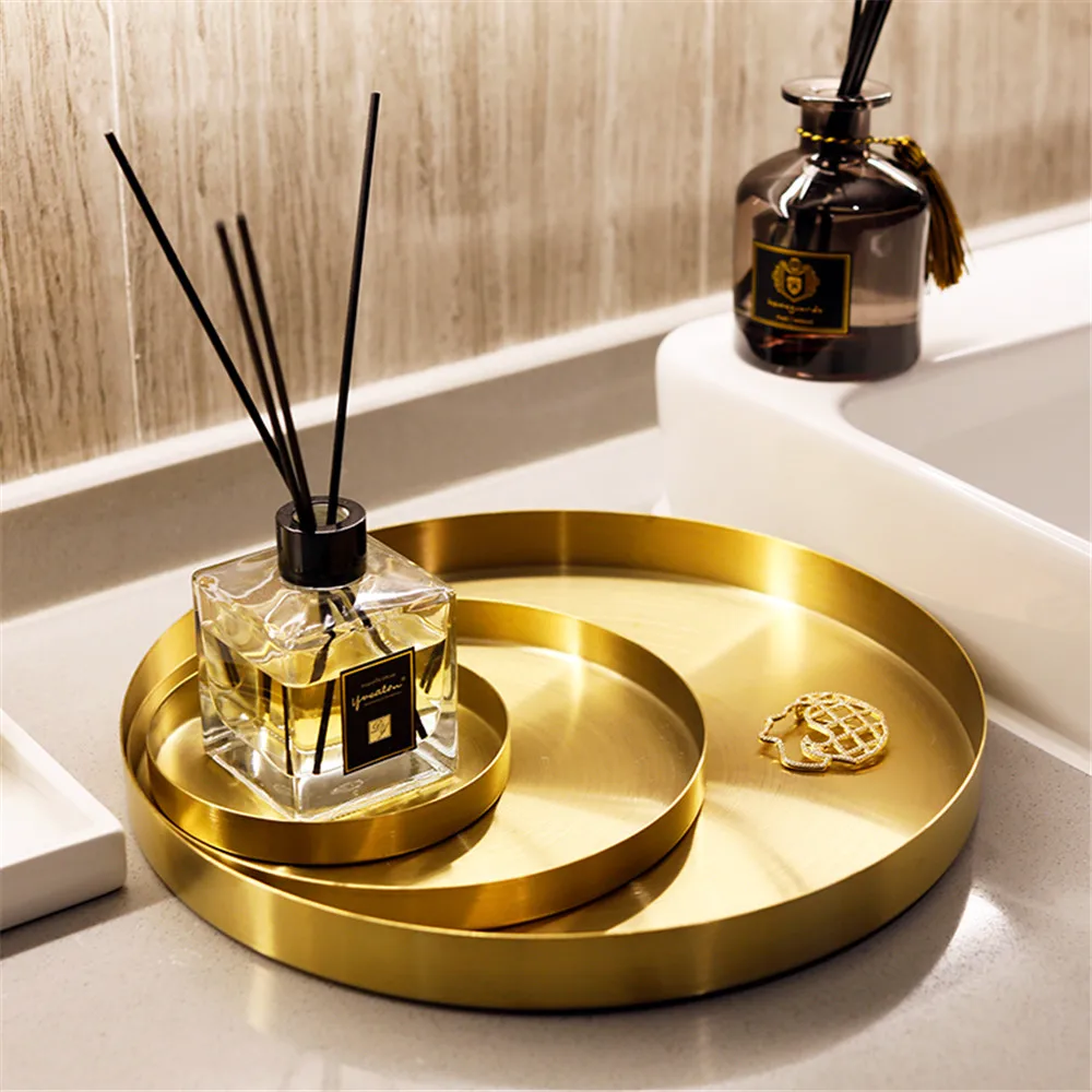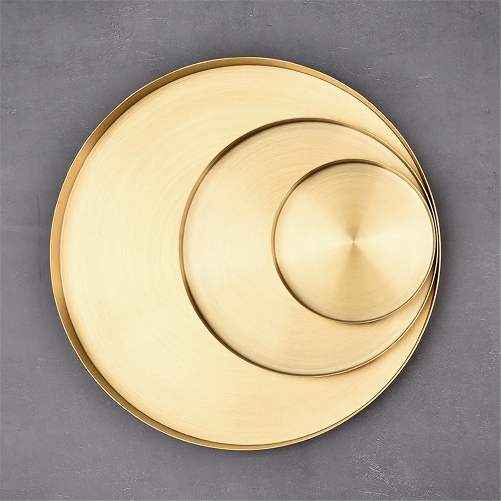 Роскошный поднос для хранения в скандинавском стиле, Круглый Настольный органайзер из нержавеющей стали для ювелирных изделий, подносы для десертов и послеобеденного чая