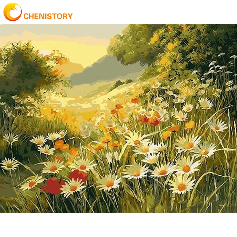 CHENISTORY Рамка DIY живопись по номерам белые желтые цветы живопис...