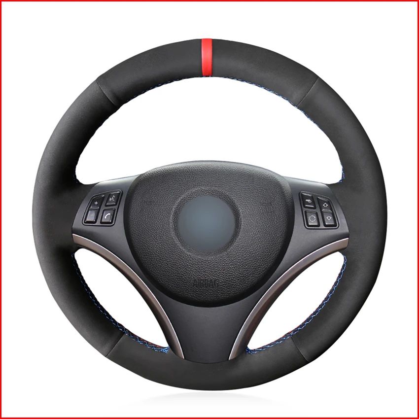 Черный замшевый красный маркер DIY чехол рулевого колеса автомобиля...