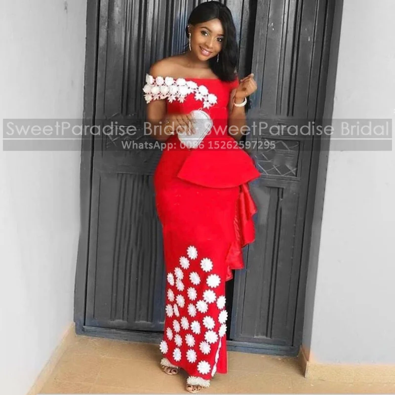 Шикарная Русалка, красные вечерние платья с белым цветочным узором с аппликацией и вырезом лодочкой, женское длинное платье-футляр для выпускного вечера, вечерние платья, халат De Soiree De Mariage, длина до пола, индивидуальный заказ, до 100