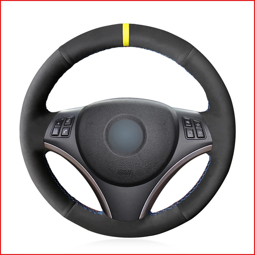 Желтый Маркер черная замша ручной шить крышка рулевого колеса для BMW E90 E91 E92 E93 X1 E84 E87 E81 E82 E88 аксессуары