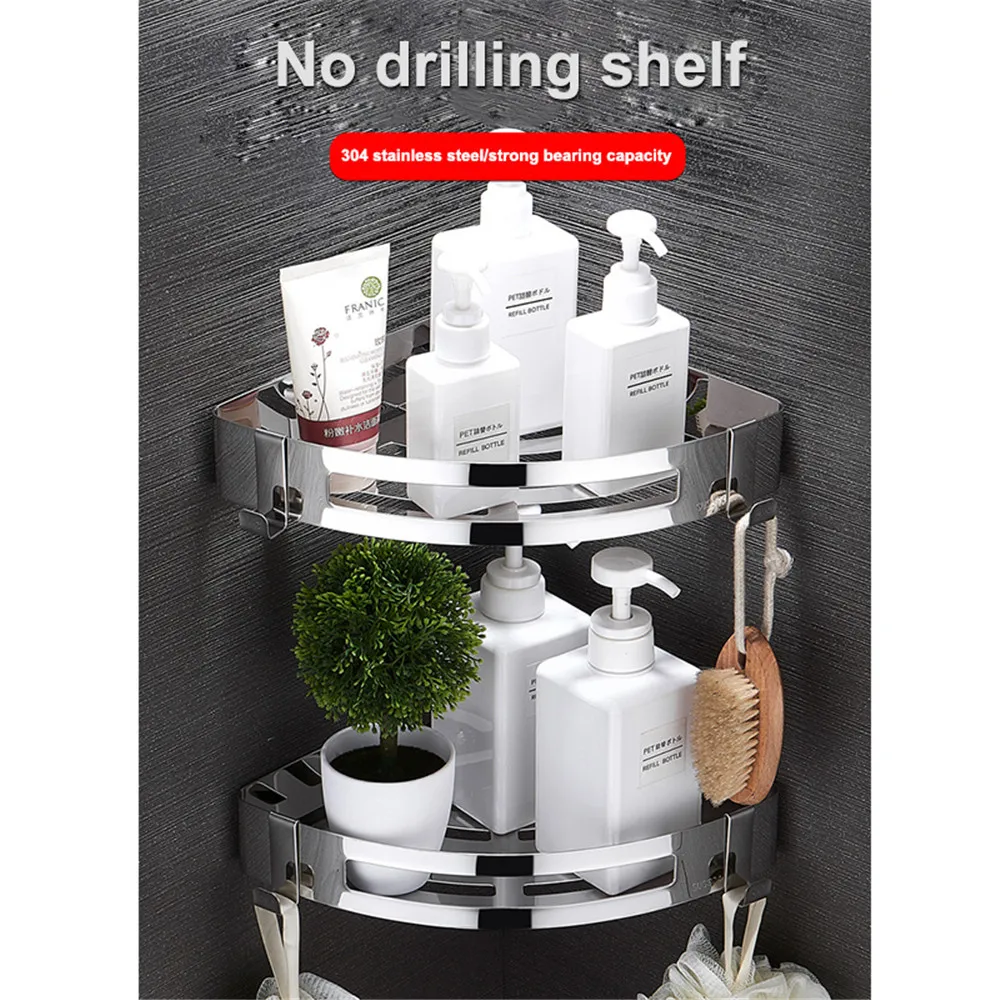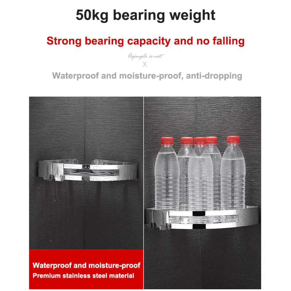 Аксессуары для ванной комнаты, настенная полка, кухонный Органайзер на присоске, настенная угловая полка для хранения из нержавеющей стали, кухонный крючок без перфорации