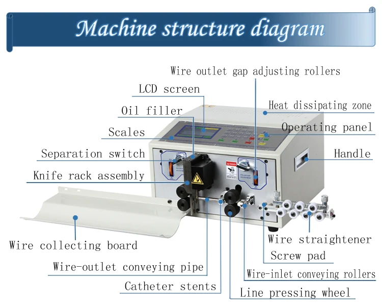 Характеристики функции продукта:Коллекция и интеграция, микрокомпьютер автоматический компьютер для полосы линия машина является своего рода введен в Японии, Тайване, и других передовых технологий автоматизации всех оборудования числового управления. Широко используется в электронной промышленности, городе ahs, электроприборов, моторов, ламп и фонарей, игрушек и других различных продуктов обработки проволоки. Оптимальная разделенная проволока пвх, тефлон, стеклянная проволока и т. Д.Наш продукт предназначен для использования в режиме общения с человеком-машиной с ЖК-экраном, с приятным внешним видом, простой работой, удобным обслуживанием, стабильной производительностью, скоростью, точностью и более высокими основными функциями. Длина провода может установить произвольные, thrum и параметры конца линии также могут в соответствии с запросом клиента изменить, различная степень отделки зачистки проводов, также имеет линию высокого напряжения линии, корпус ножниц и т. Д.Технические параметры:1. Модель: SWT508E2. Напряжение: 110 В переменного тока/220 В/50/60 Гц3. Размеры: 390x350x2554. Режим отображения: жидкокристаллический ЖК-дисплей на китайском и английском языках5. Вес: 32 (кг)6. Мощность: 300 (Вт)7. Длина резки: 1-9999 мм8. Cutring Допуск по уровню поверхности: (0,2 ± 0,002 ×L) мм9. Допуск На Резку: коррекция10. Длина зачистки: головка 0-50 мм, Конец 0-50 мм11. Промежуточная Зачистка: eleven место полосы12. Сечение провода: 0,1 ~ 8mm213. Максимальный диаметр трубки: ¢ 814. Подходит для зачистки проводов: ПВХ/ПТФЭ/силиконовый кабель/стекловолокно15. Материал лезвия: жесткая сталь16. Скорость провода (шт/ч): 2000-500017. Привод: четырехколесный привод