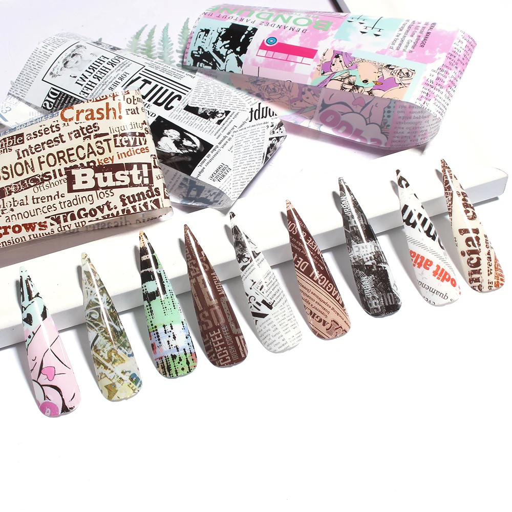 10 шт.компл. Фольга для ногтей, наклейка для ногтей в стиле ретро, цветок, переводные наклейки для ногтевого дизайна, наклейки сделай сам, наклейки, украшения, искусственная кожа