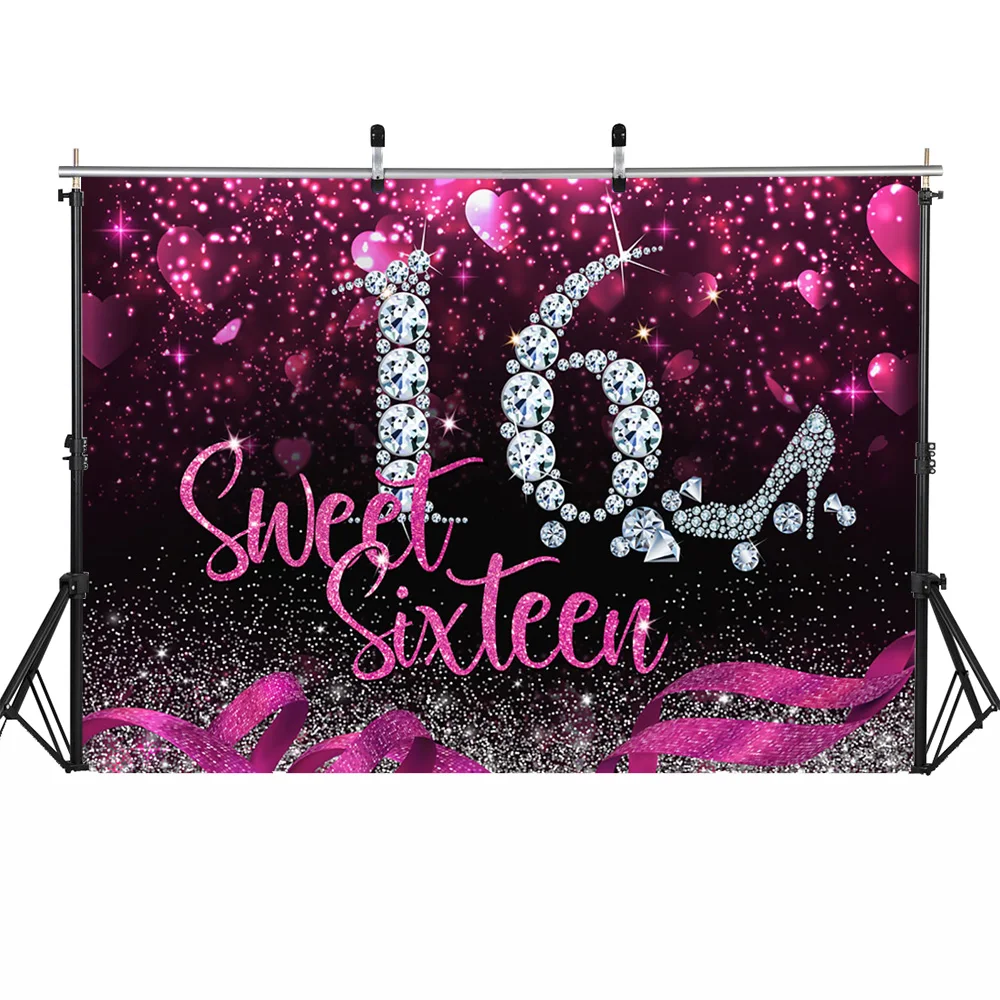Фон для фотосъемки 16 дней рождения, розовый, с блестками, декоративная фотобудка