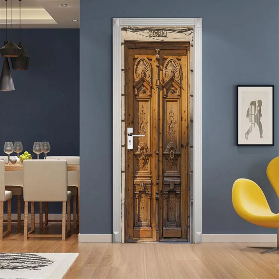 ПВХ дверь спальни обои плакат самоклеящиеся деревянные дверные наклейки домашний декор наклейка цементная серая Настенная Наклейка