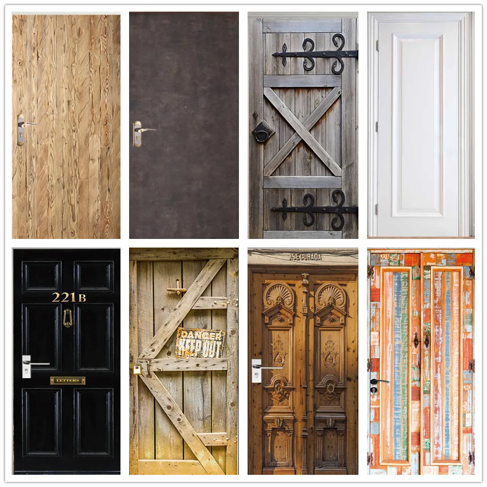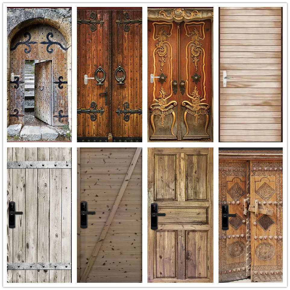 Wood door stickerRetro wooden door