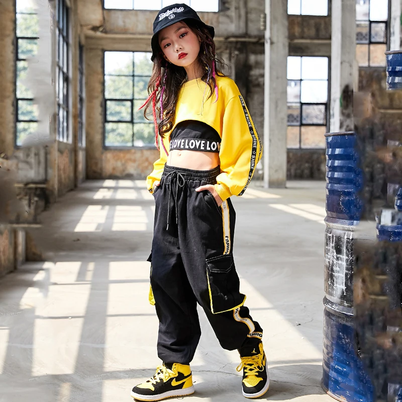 Детский костюм для танцев, в стиле хип-хоп, для девочек, комплект из свитера с брюками