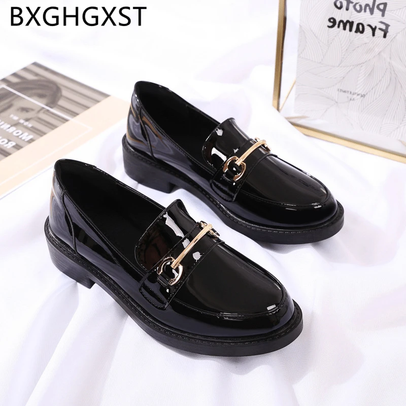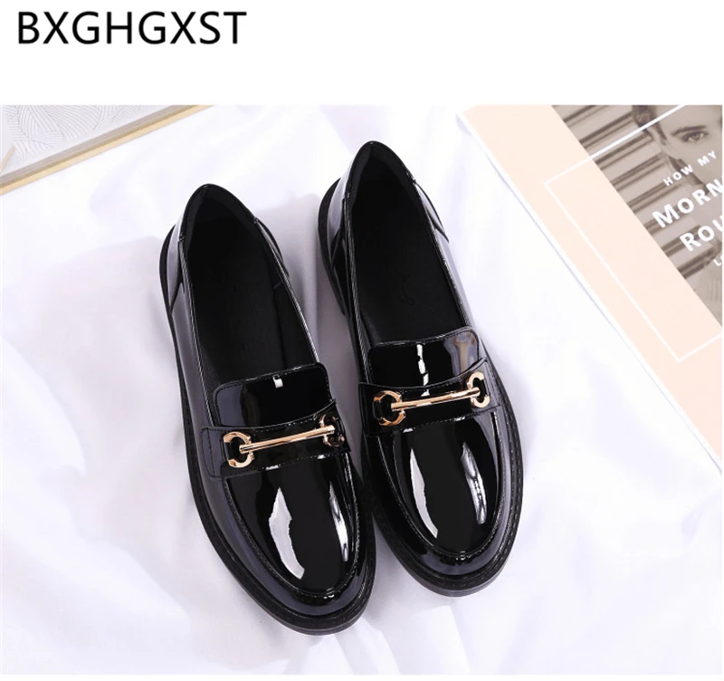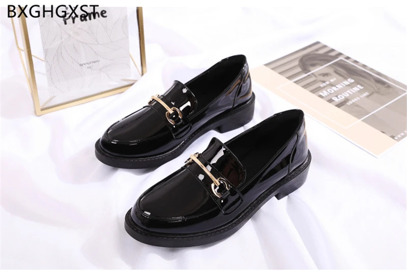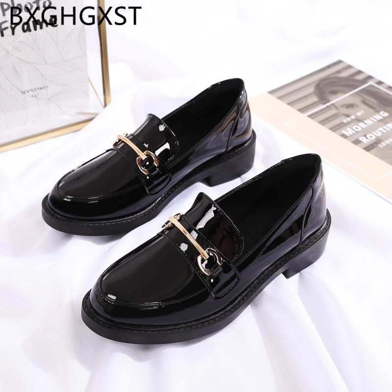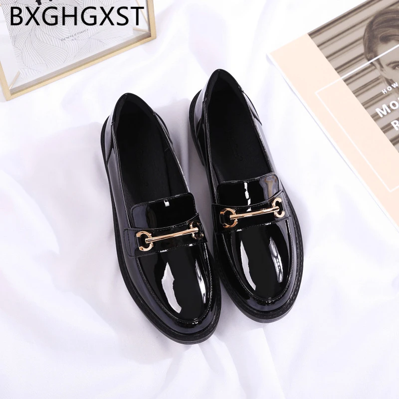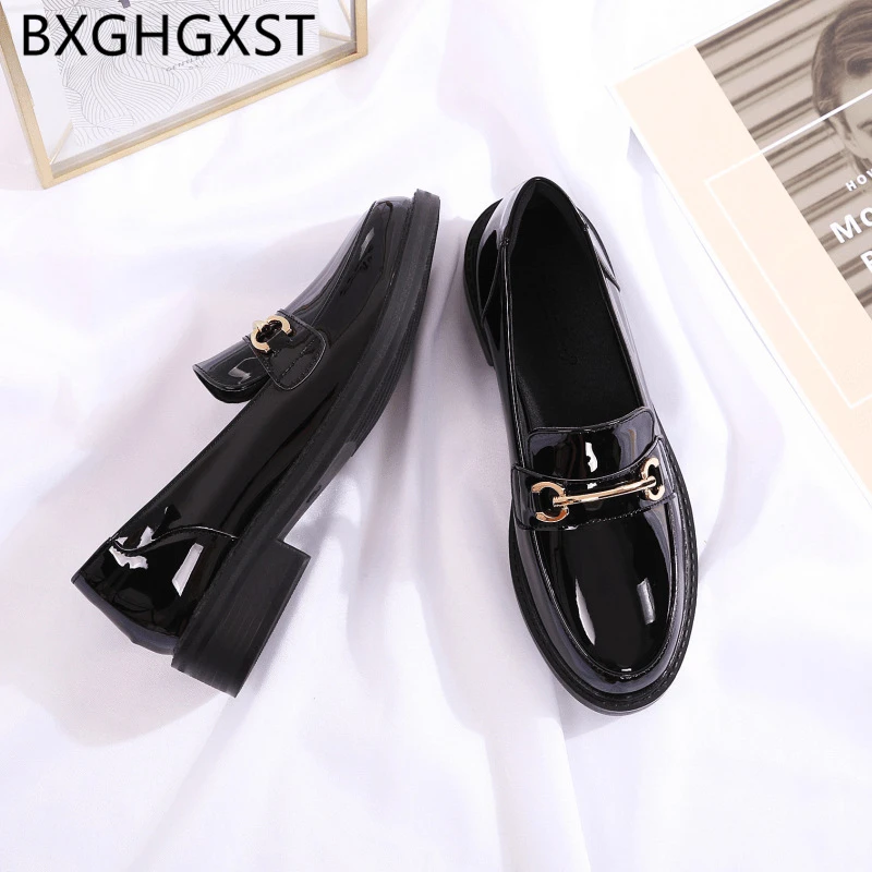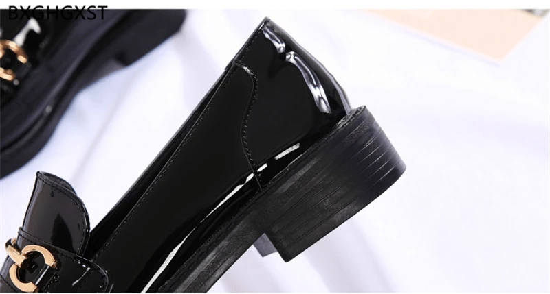 Туфли женские из лакированной кожи, без застежки, черные, в стиле Харадзюку