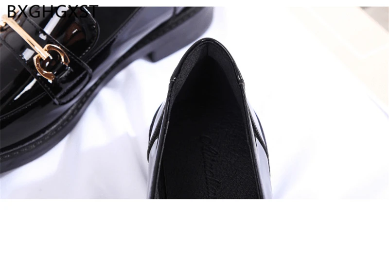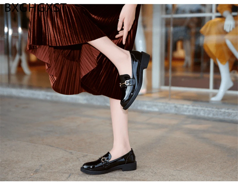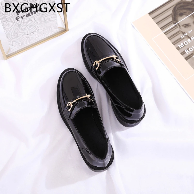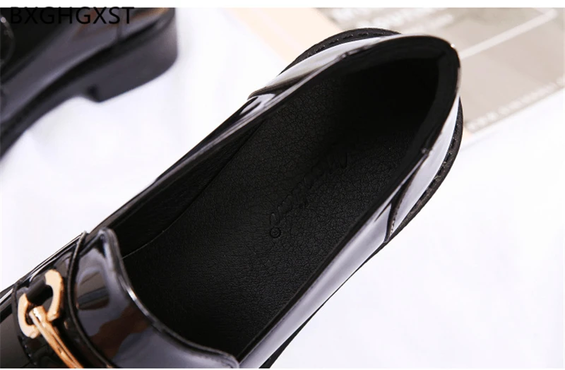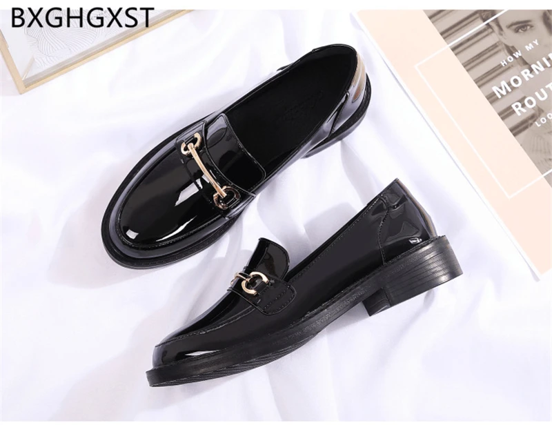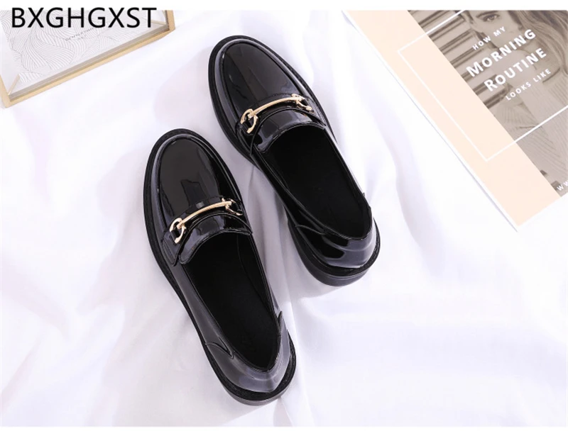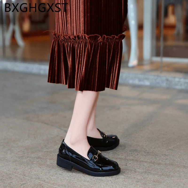 Туфли женские из лакированной кожи, без застежки, черные, в стиле Харадзюку