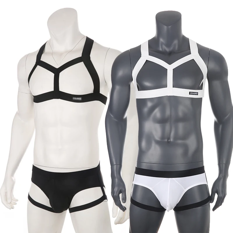 Мужское нижнее белье из ледяного шелка, трусы с воротником-хомутом, для ночного клуба вечерние, сексуальные костюмы, нагрудный ремень для Тела Бондаж, черный комплект