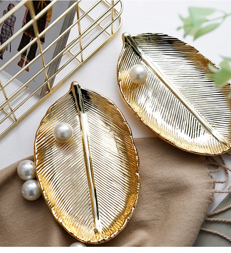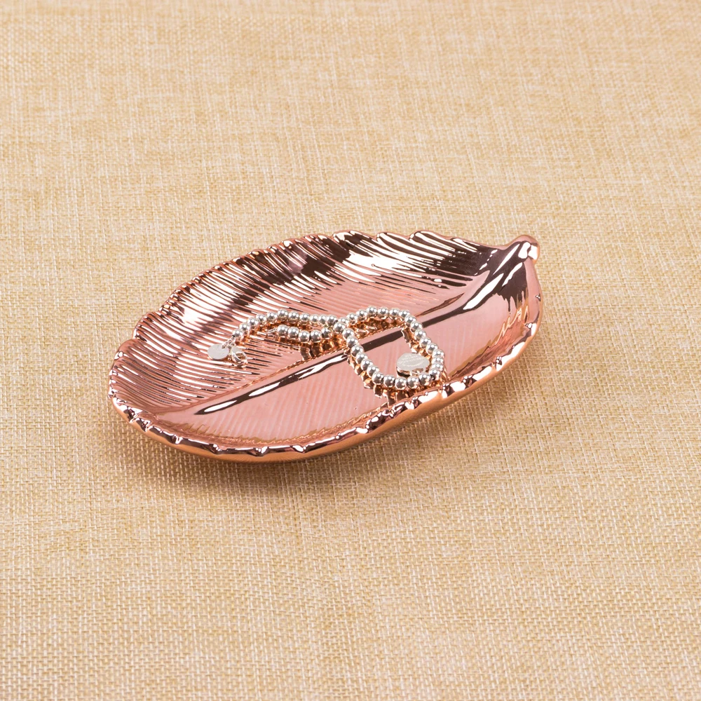 Аккумуляторы для Керамика тарелка с листьями Серебряный хранения лоток из розового золота Керамика s украшения побрякушки эмали Блюдо Лист дерева украшения закуски десерт
