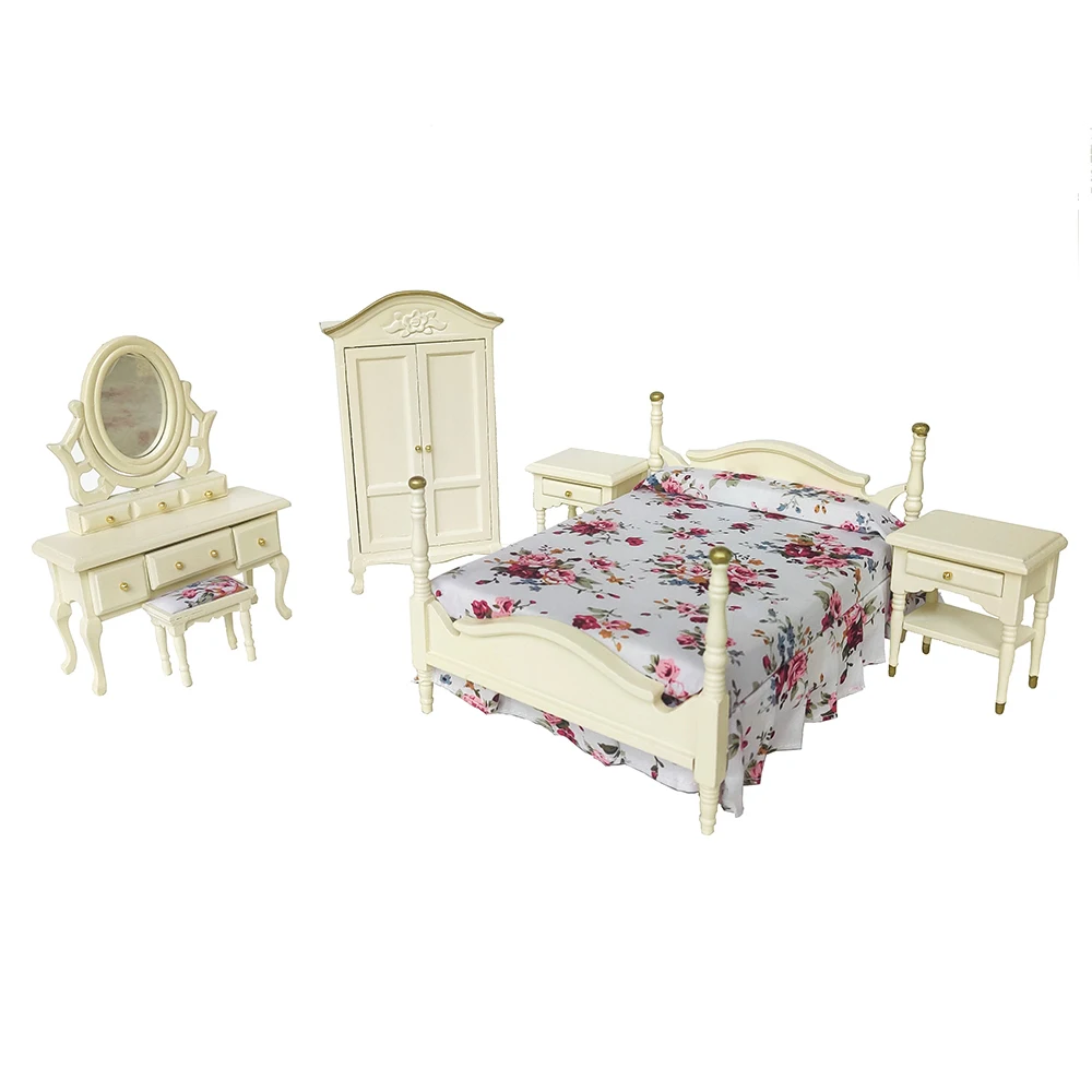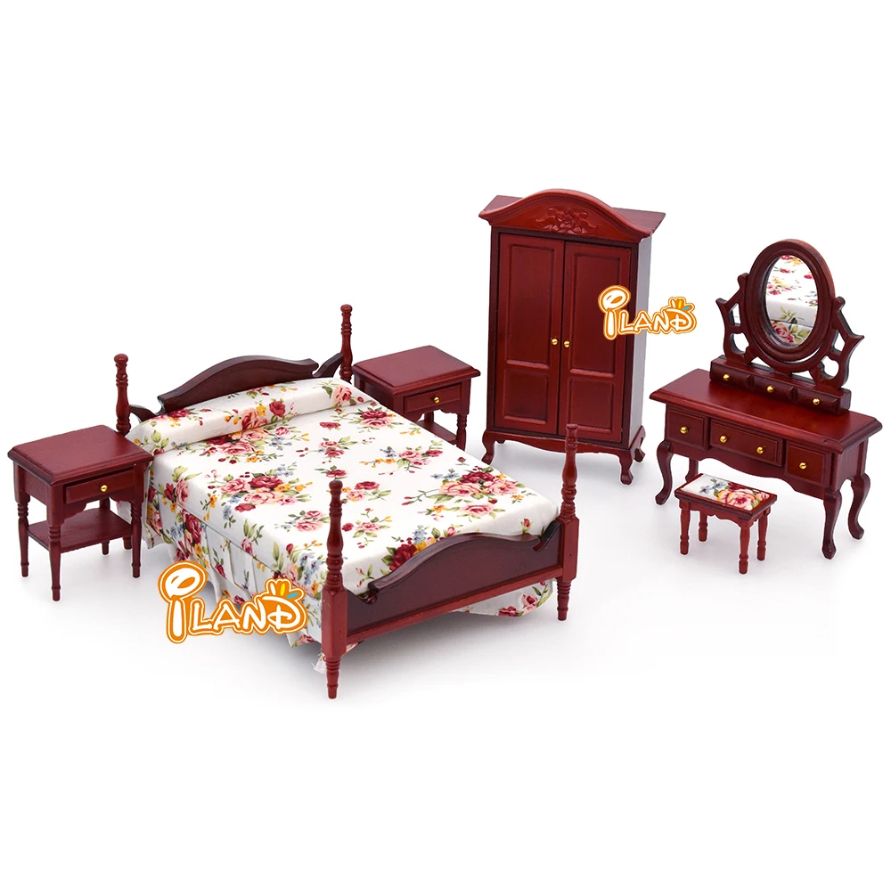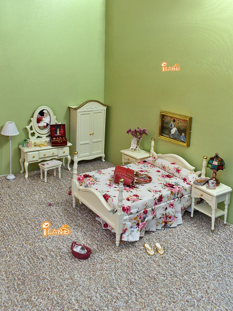 Миниатюрный Кукольный домик ILAND, мебель для спальни, мини-кровать, шкаф, кукольный домик, аксессуары, рождественский подарок, игрушки для девочек и мальчиков