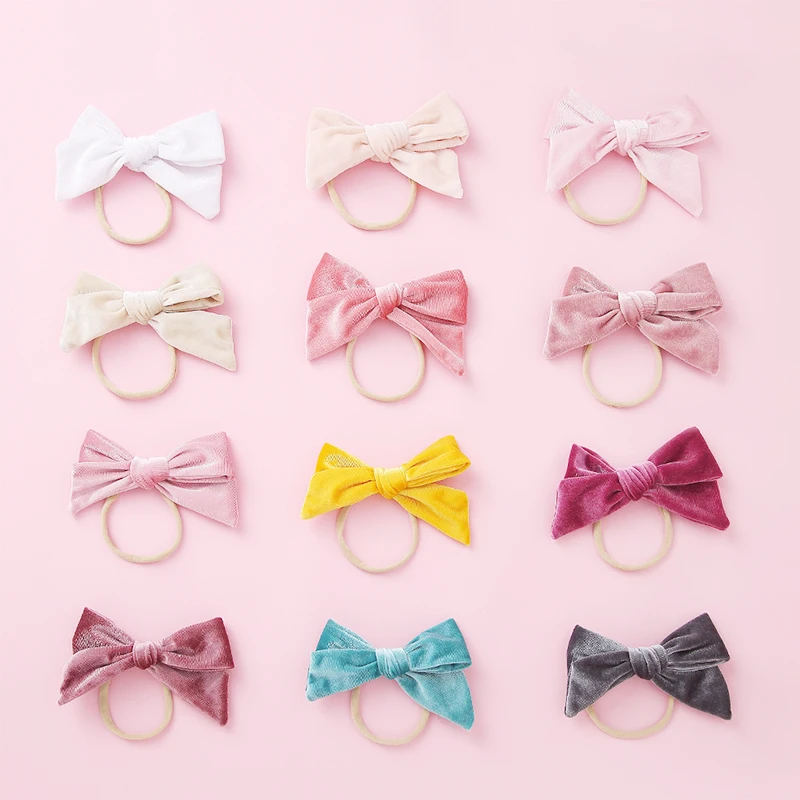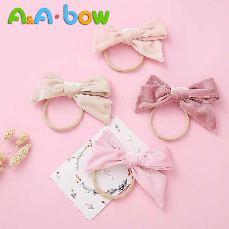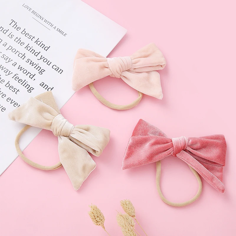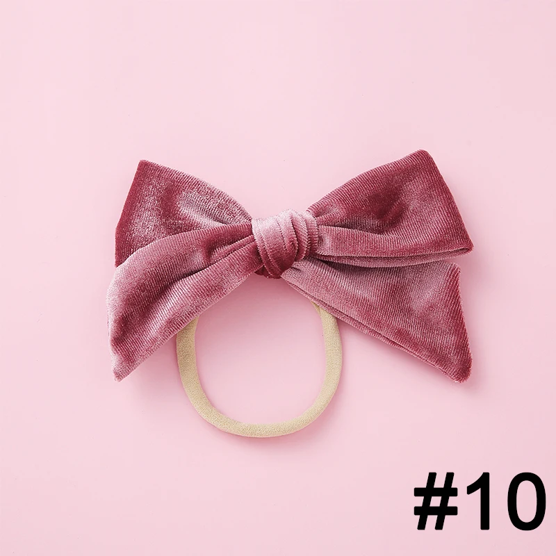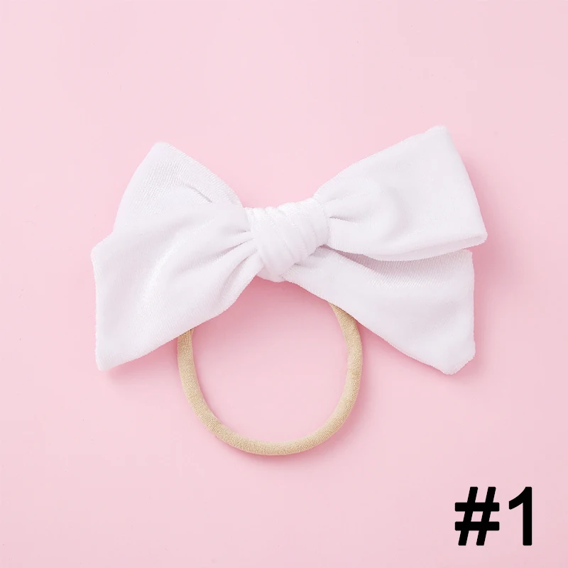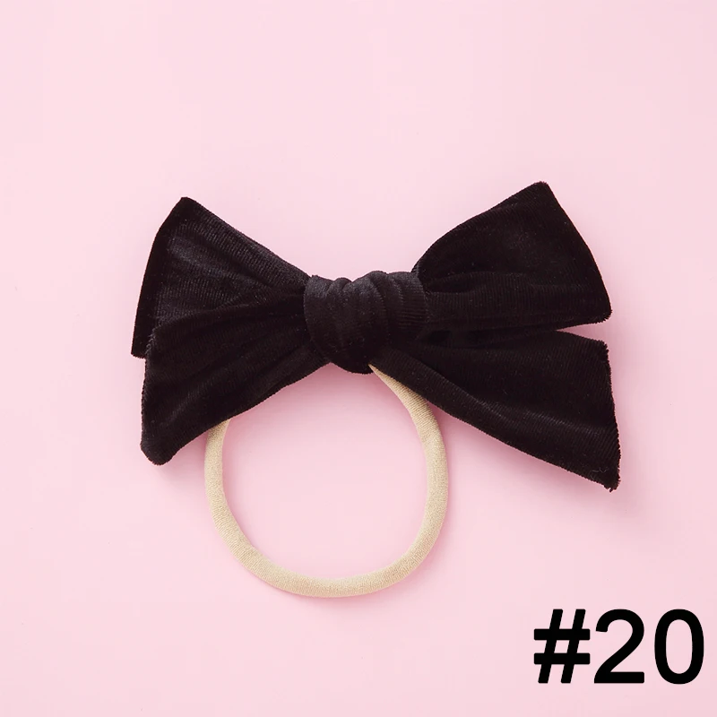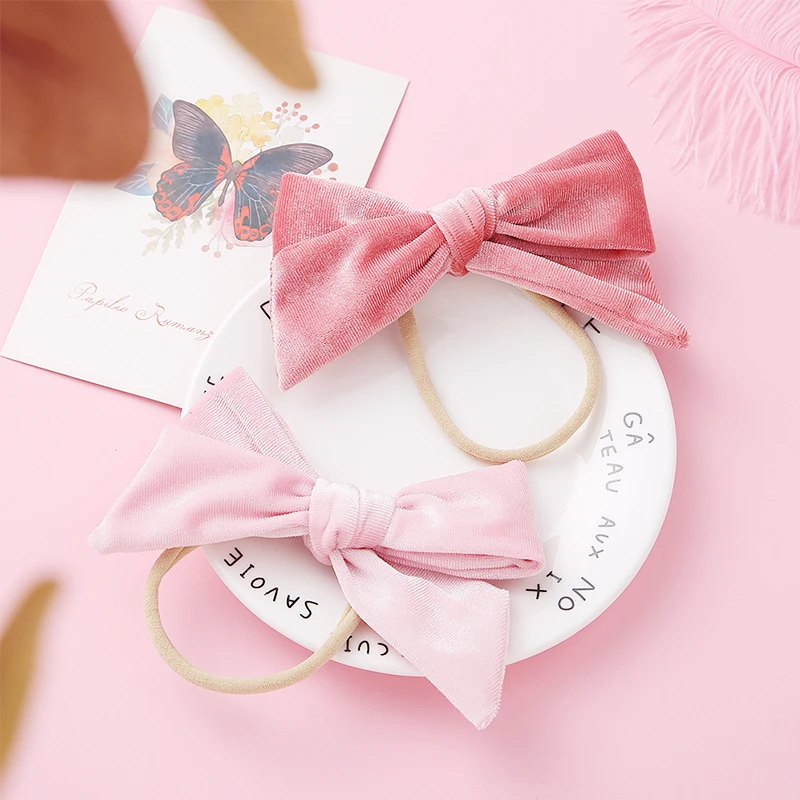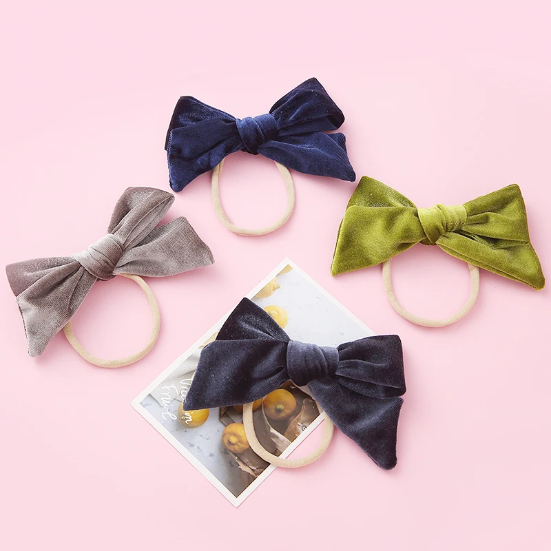 Повязка на голову для девочек, Вельветовая, однотонная, эластичная, нейлоновая, с бантом, 1 шт., повязки для детей