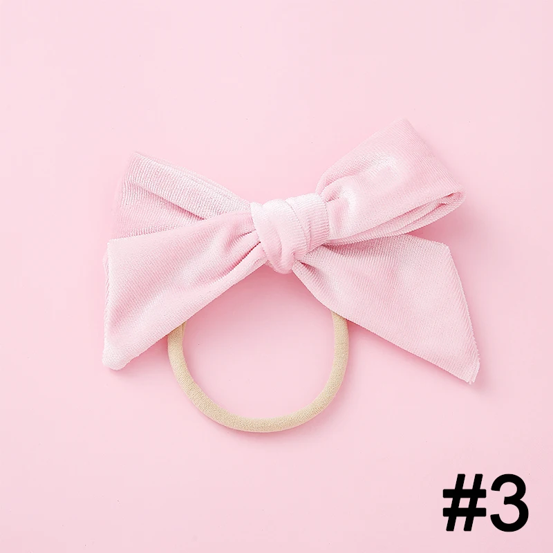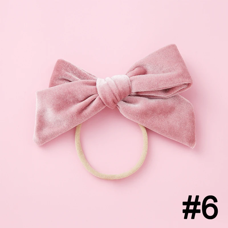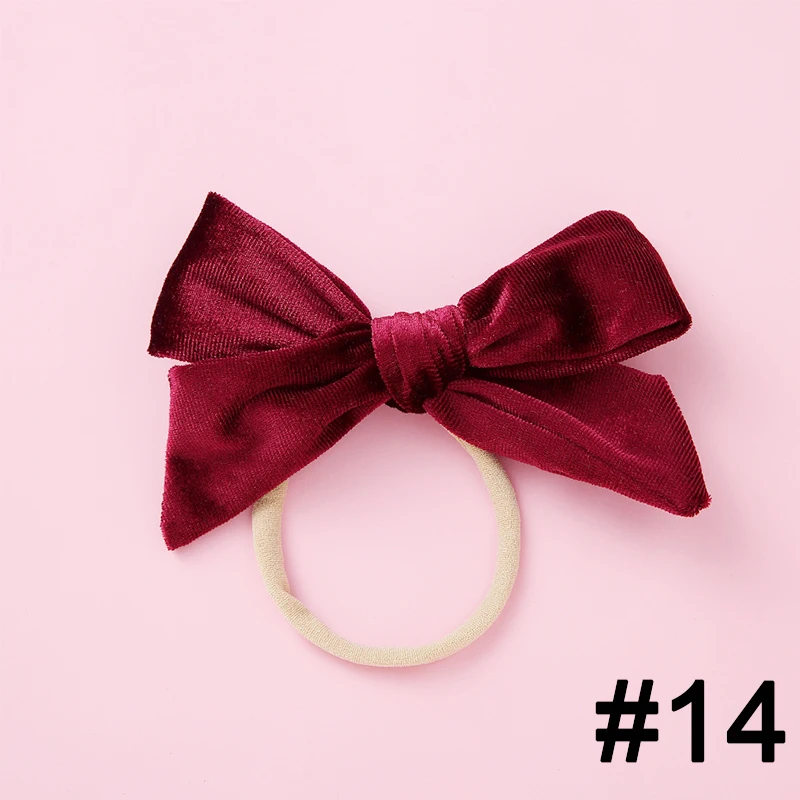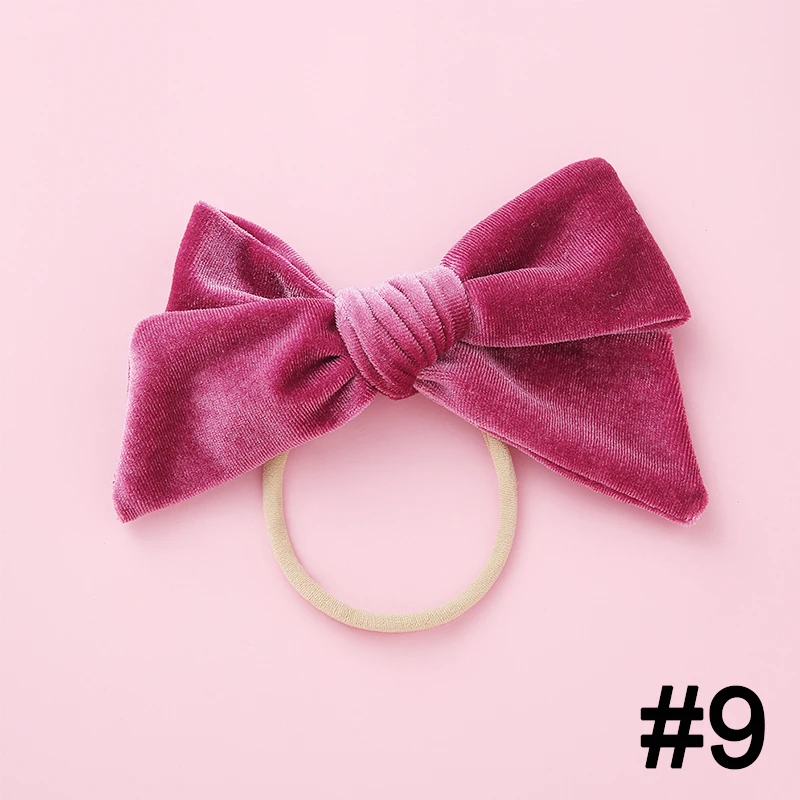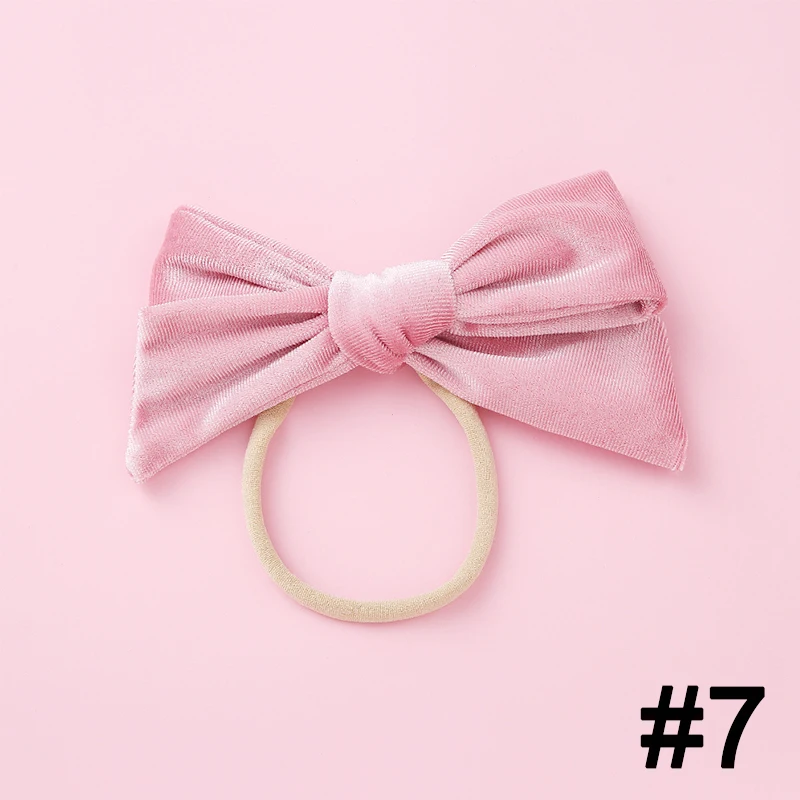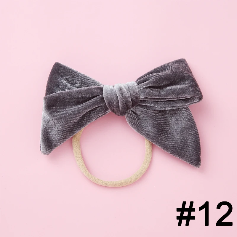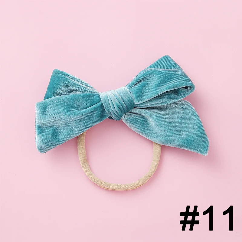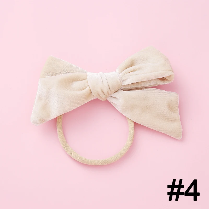 Повязка на голову для девочек, Вельветовая, однотонная, эластичная, нейлоновая, с бантом, 1 шт., повязки для детей