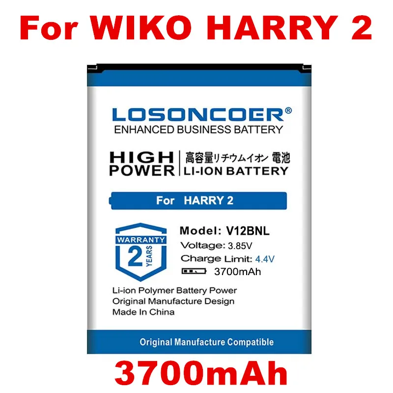 Аккумулятор LOSONCOER V12BNL на 3700 мАч для телефона Wiko Harry 2 Harry2