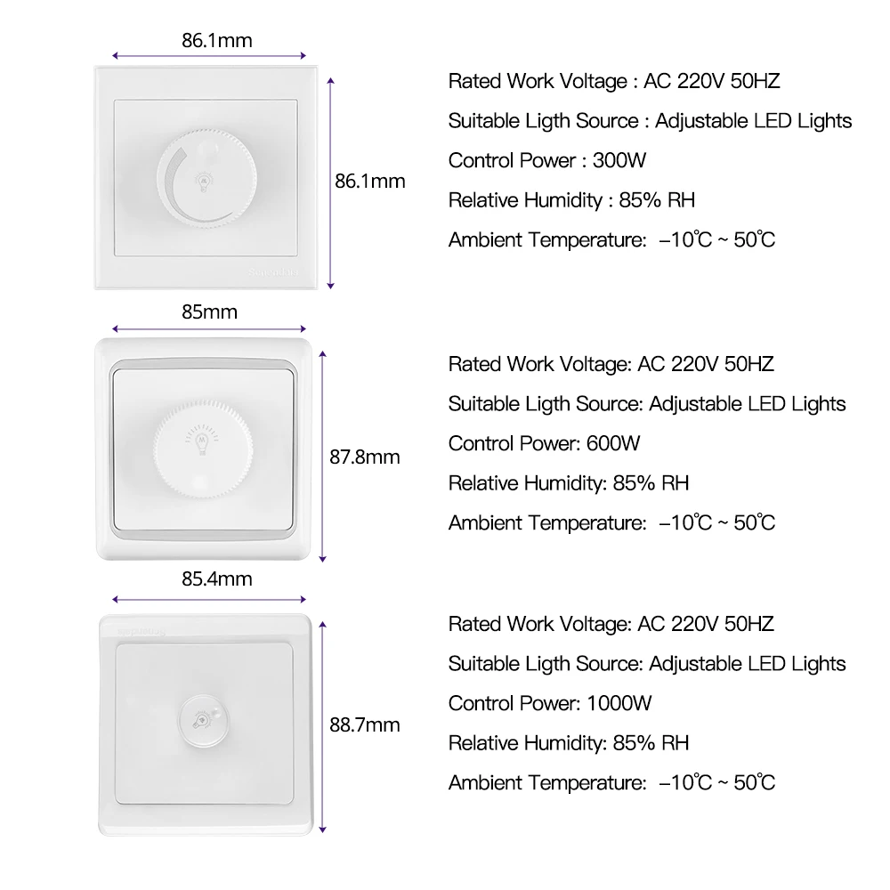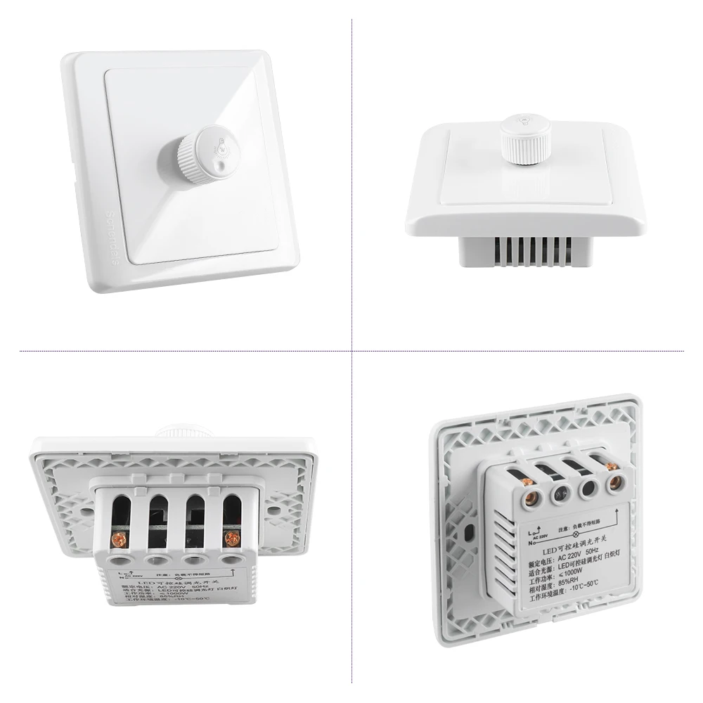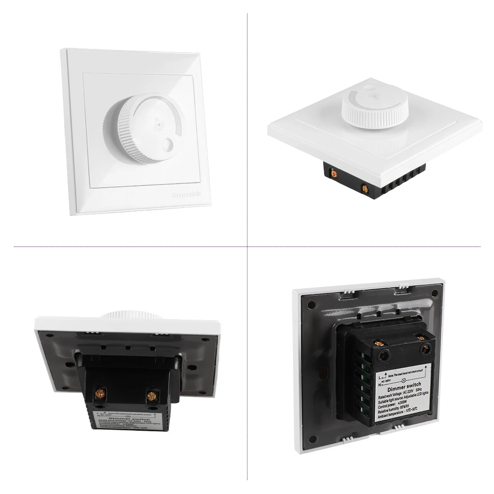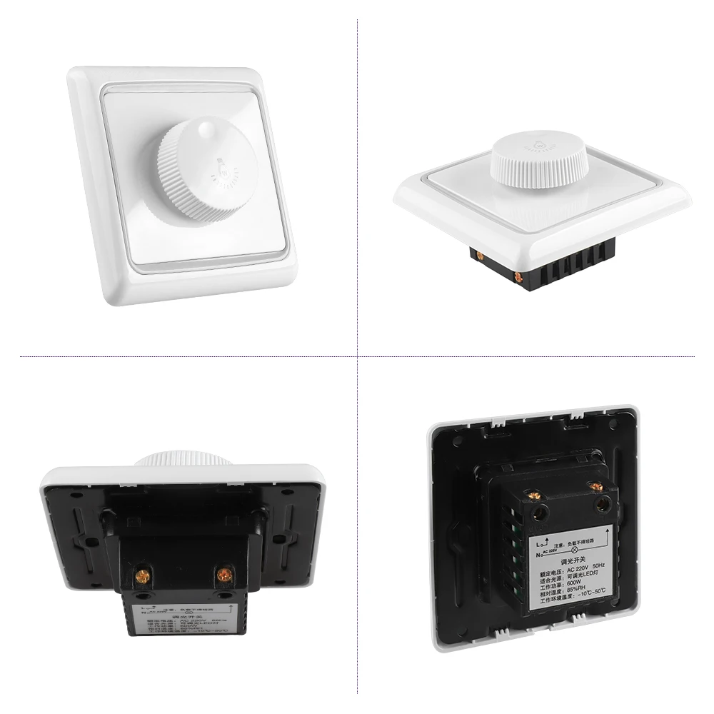 Светодиодный диммер Номинальное рабочее напряжение: 220 В переменного тока 50 Гц Подходящий светильник: Adujustable светодиодный светильник s Мощность управления: 300 Вт 600 Вт 1000 Вт Модуляции: ручка Диапазон затемнения: от 1% до 100% Цвет корпуса: элегантный белый Относительная влажность: 85% относительной влажности Рабочая температура: от-10 до 50 градусов Цельсия Температура хранения: от-25 до 65 градусов Цельсия