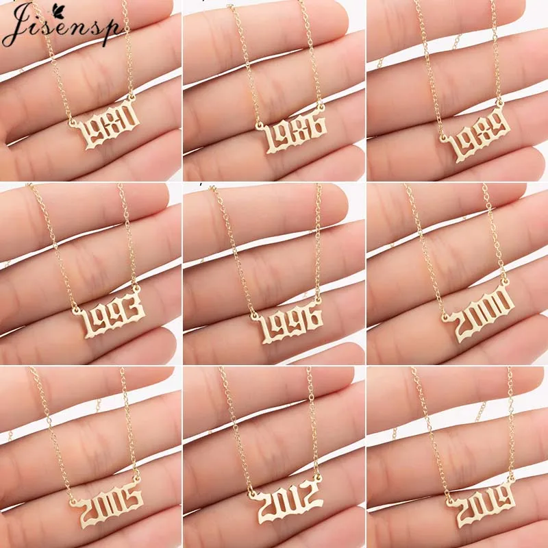 Ожерелье Jisensp с цифрами от 1980 до 2020, ожерелье с Персонализацией даты рождения, ювелирное изделие, женское ожерелье с цифрами 2020 года для женщин