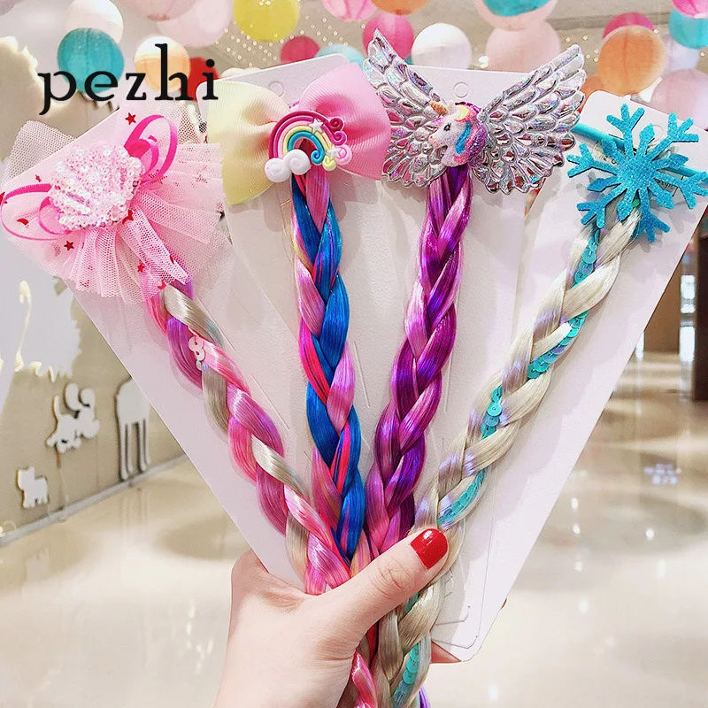 Парики для девочек, косички с единорогом, повязка для волос, головн...
