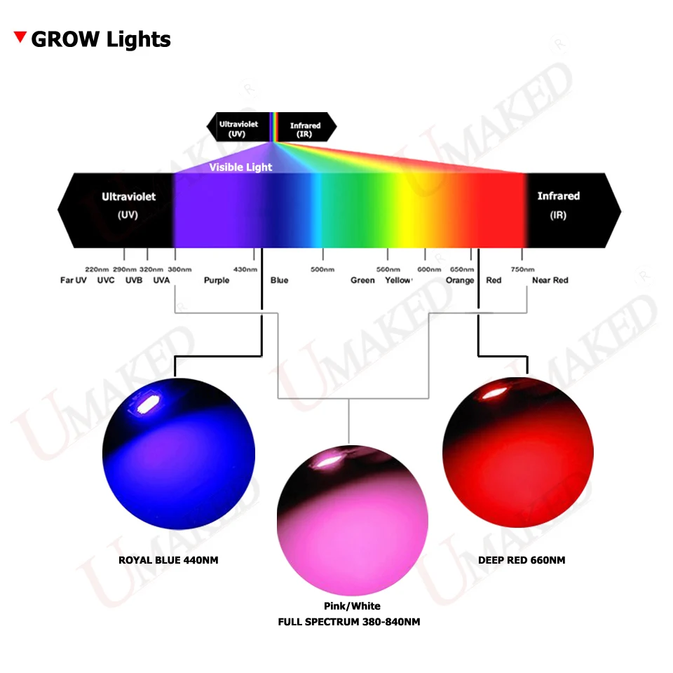 Светодиодная лампа для роста растений, 1-100 Вт, нм, нм