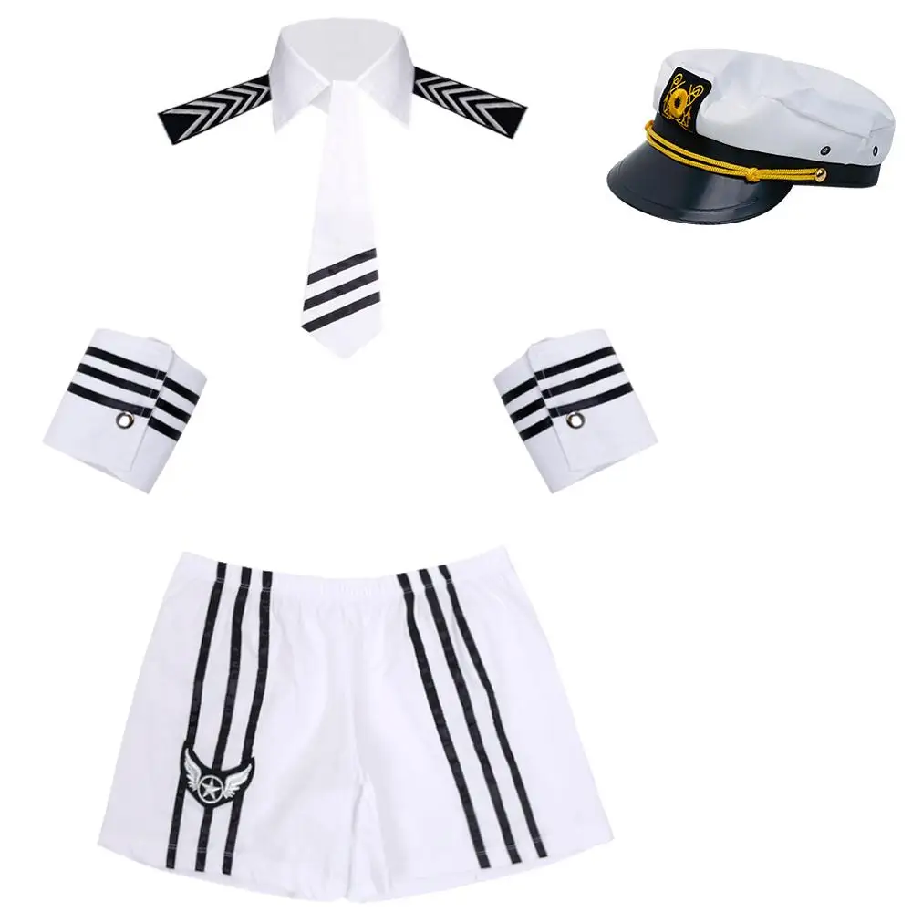Пикантные Косплэй комплект женского белья для Для мужчин эротические Униформа моряков синяя маскарадный костюм для хеллоуина Homme полосатый шорты-боксеры воротник манжеты Клубная одежда