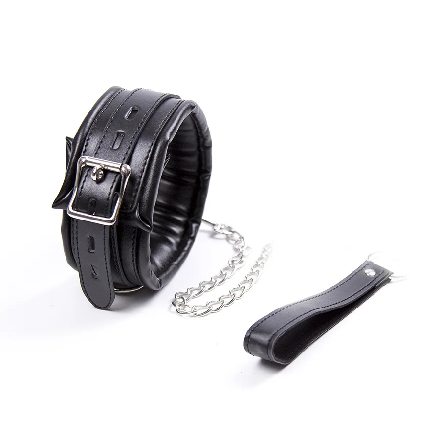 Кожаный ошейник с мягкой подкладкой для секса, ошейник с железной ц...
