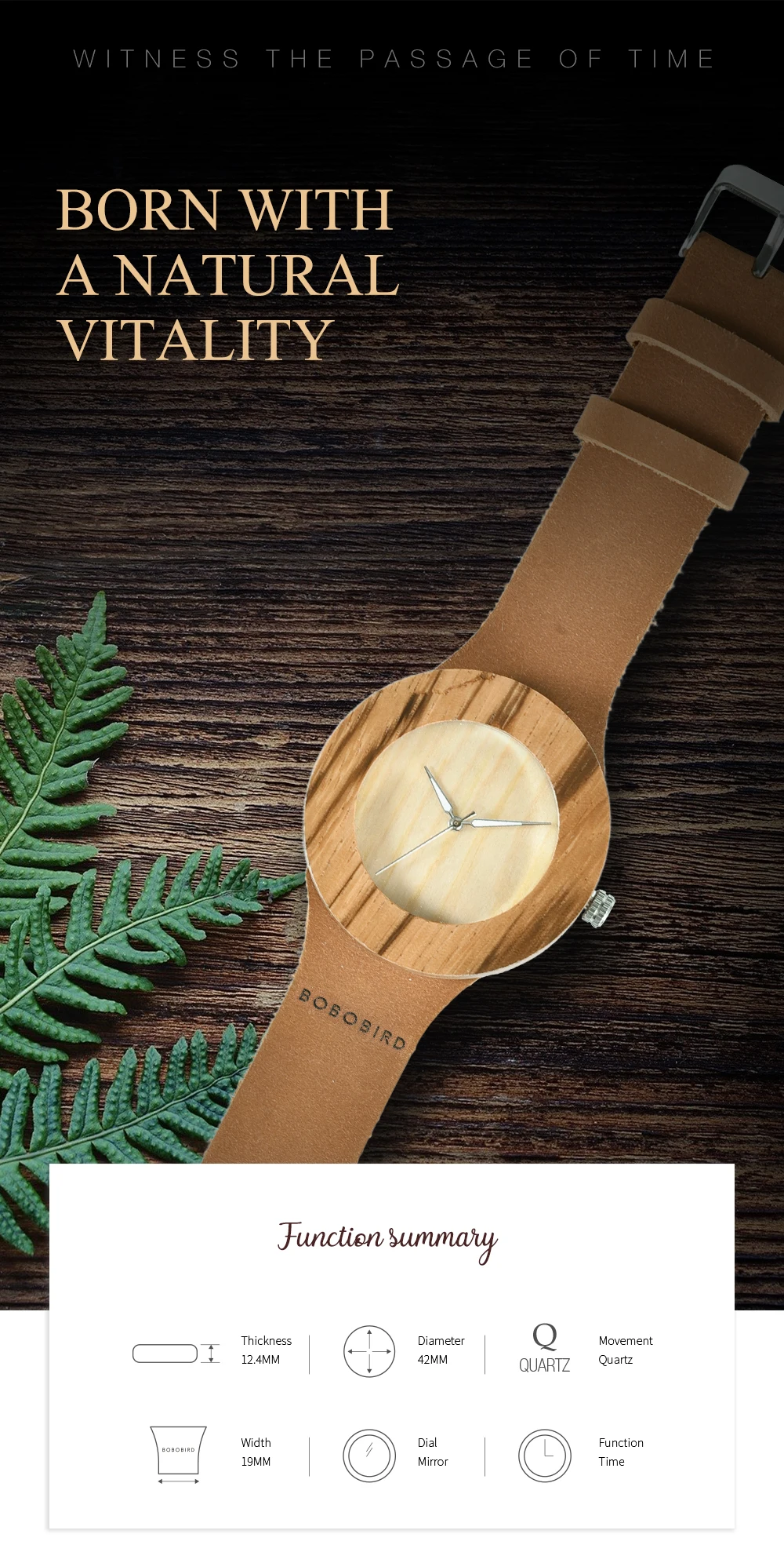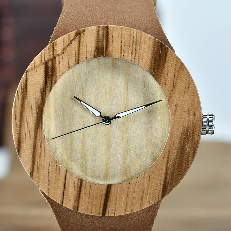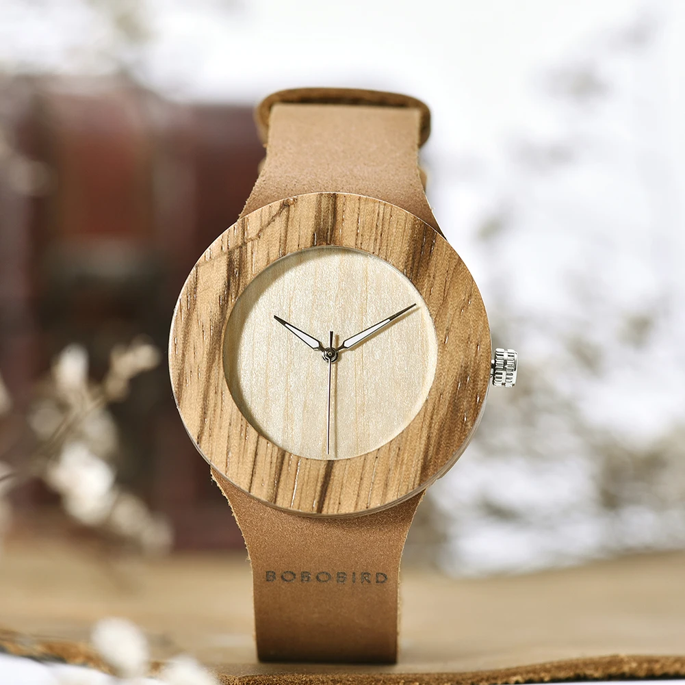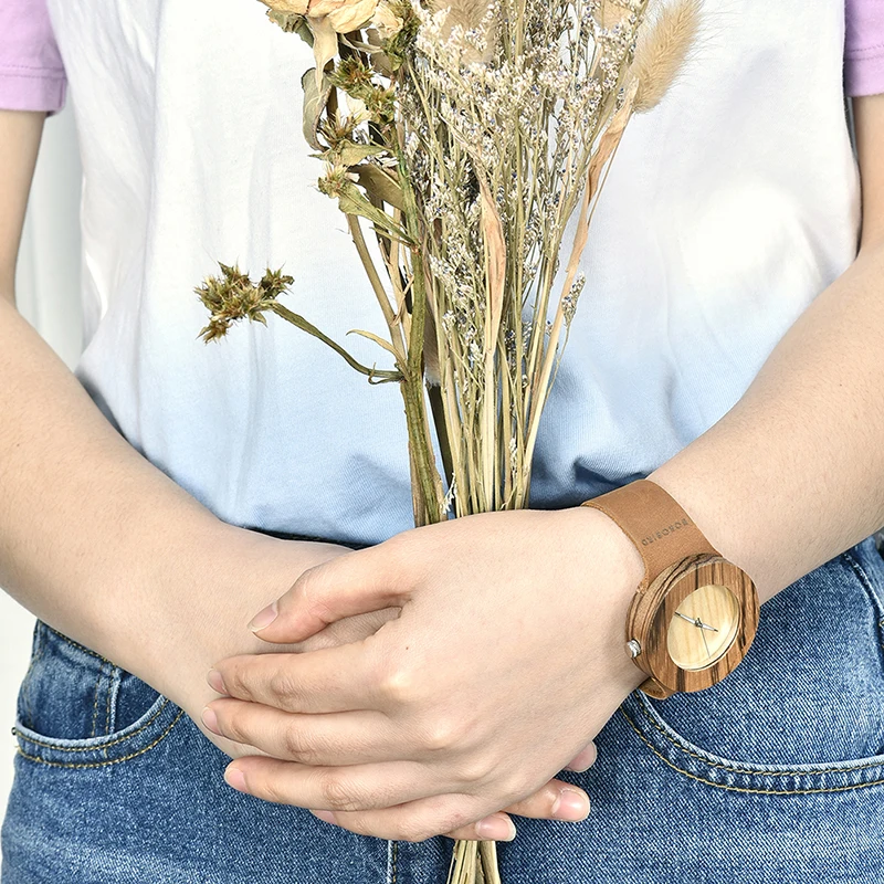 Часы женские кварцевые с деревянным ремешком, в подарочной коробке